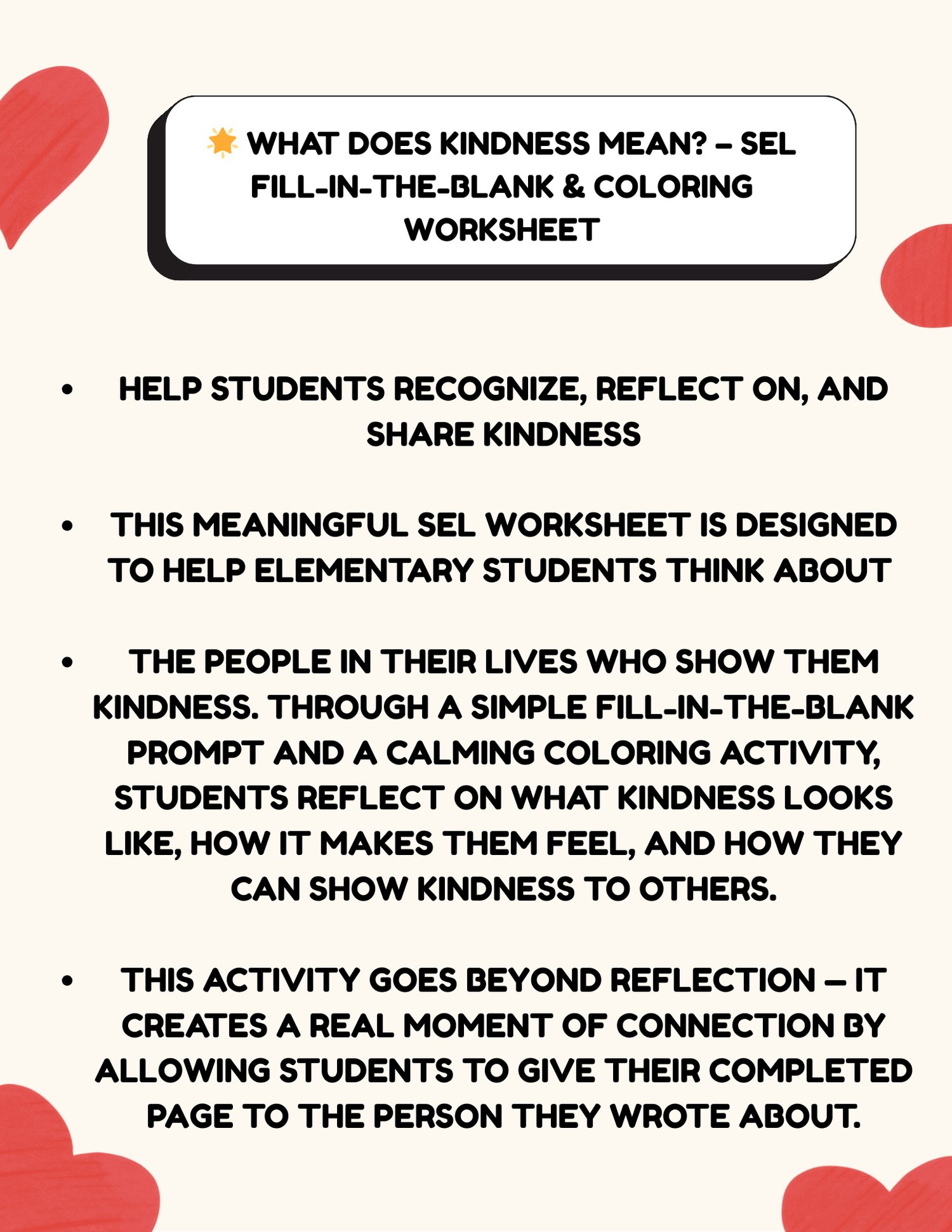 What Does Kindness Mean? | 7-Page Worksheet Packet (Print & Go)