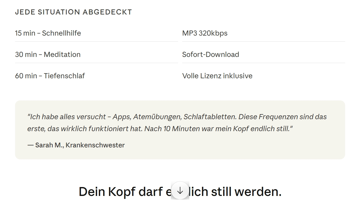 ✔ dich innerhalb von Minuten in einen Zustand tiefer Ruhe zu bringen
