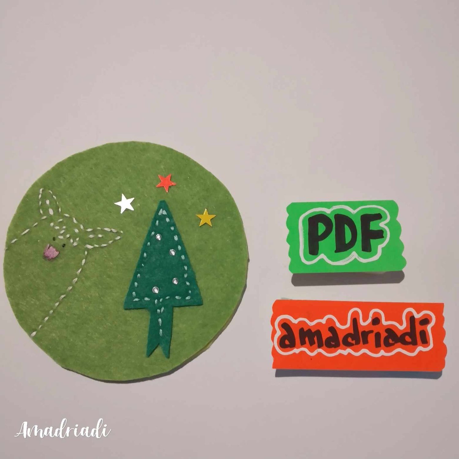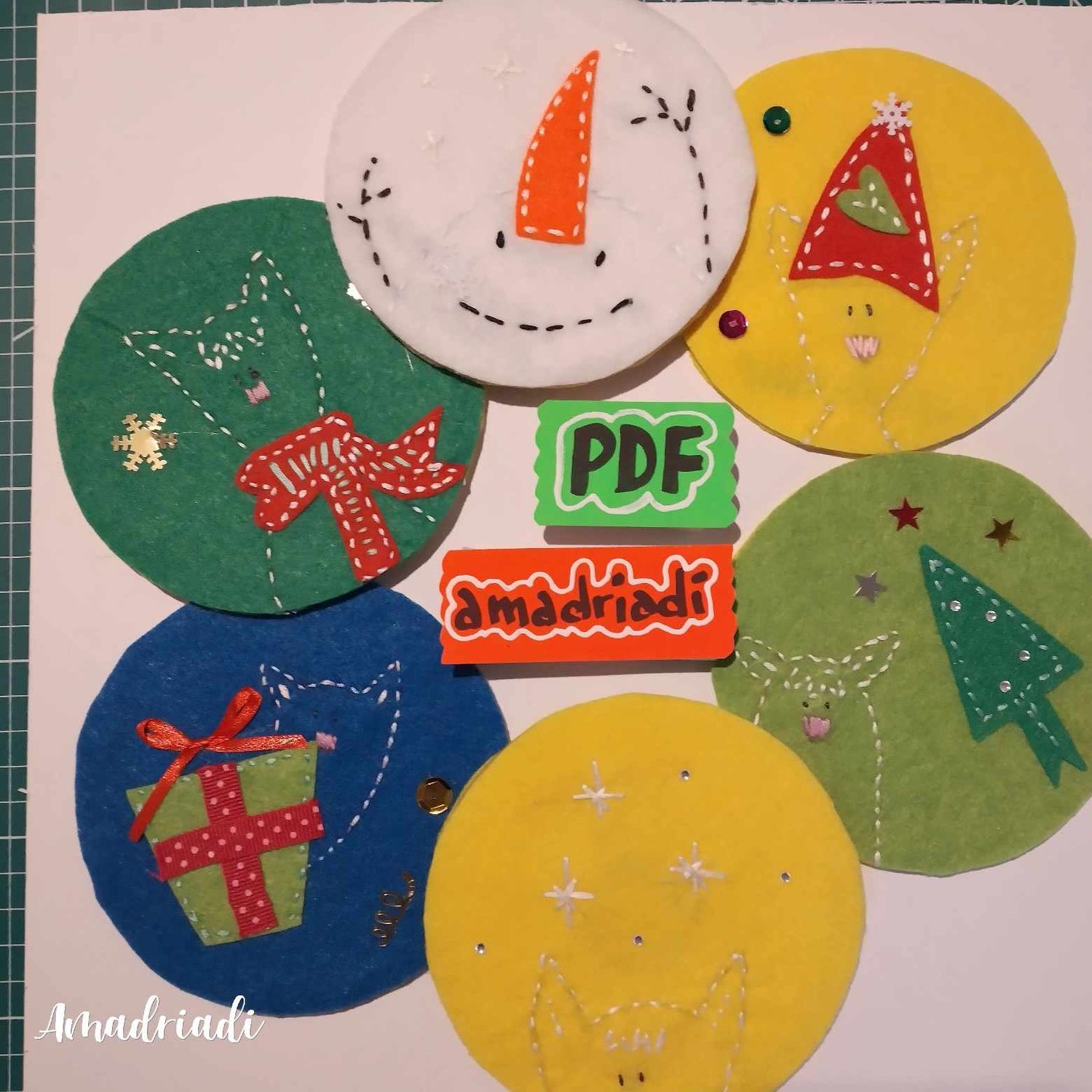 -6 Fun designs. Embroidered and sewn. To use them as coasters at Christmas.