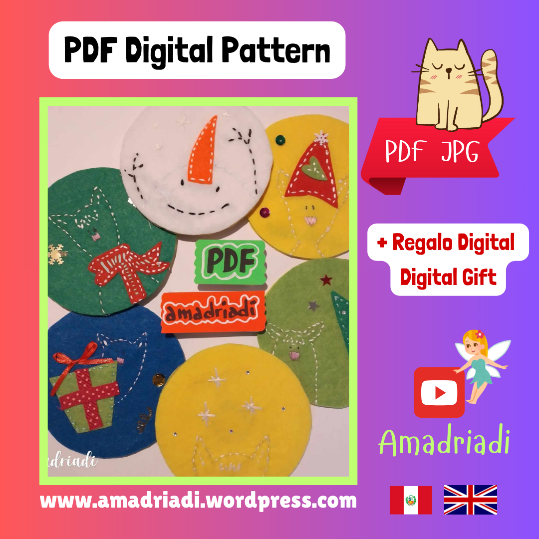 -6 Divertidos modelos. Bordado y cocido. Para usarlos como porta vasos, en Navidad.