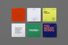 High-resolution 5×5 square business card mockups with rounded corners in flat-lay — 6000 × 4000 px at 300 DPI, with isolated lights and shadows.