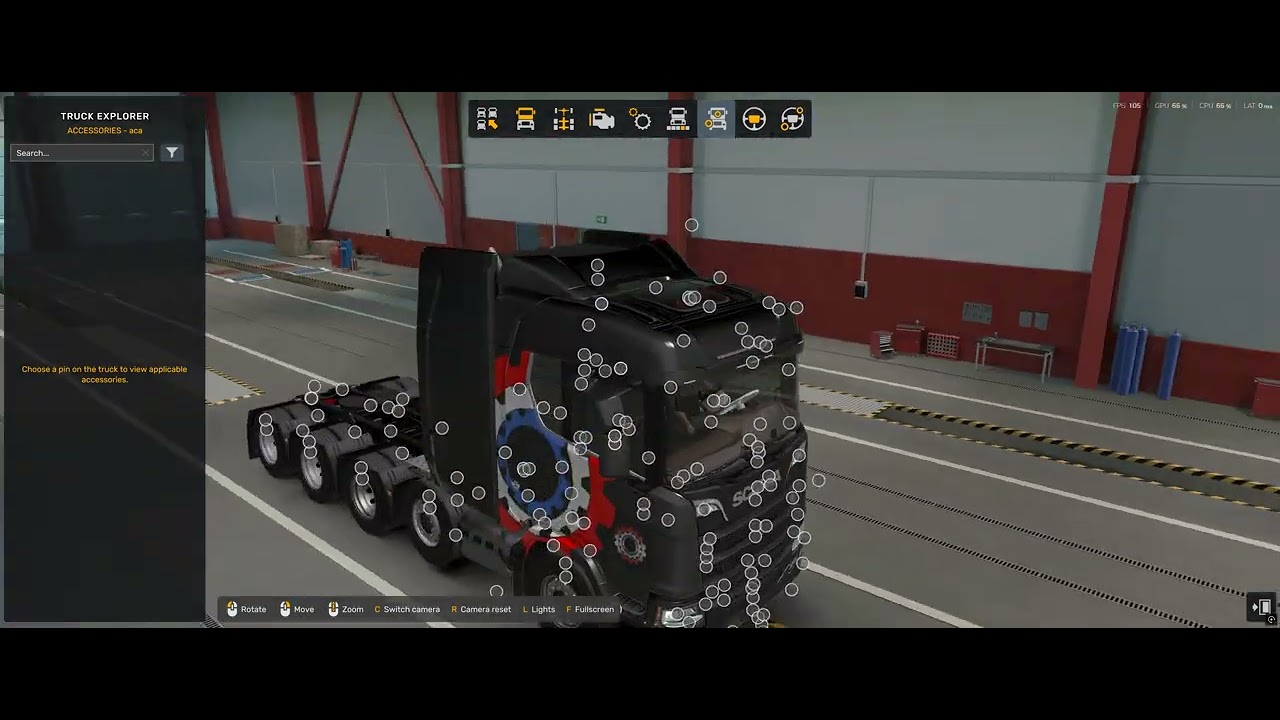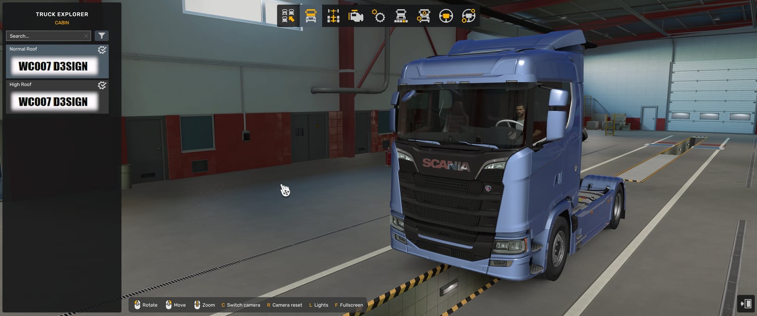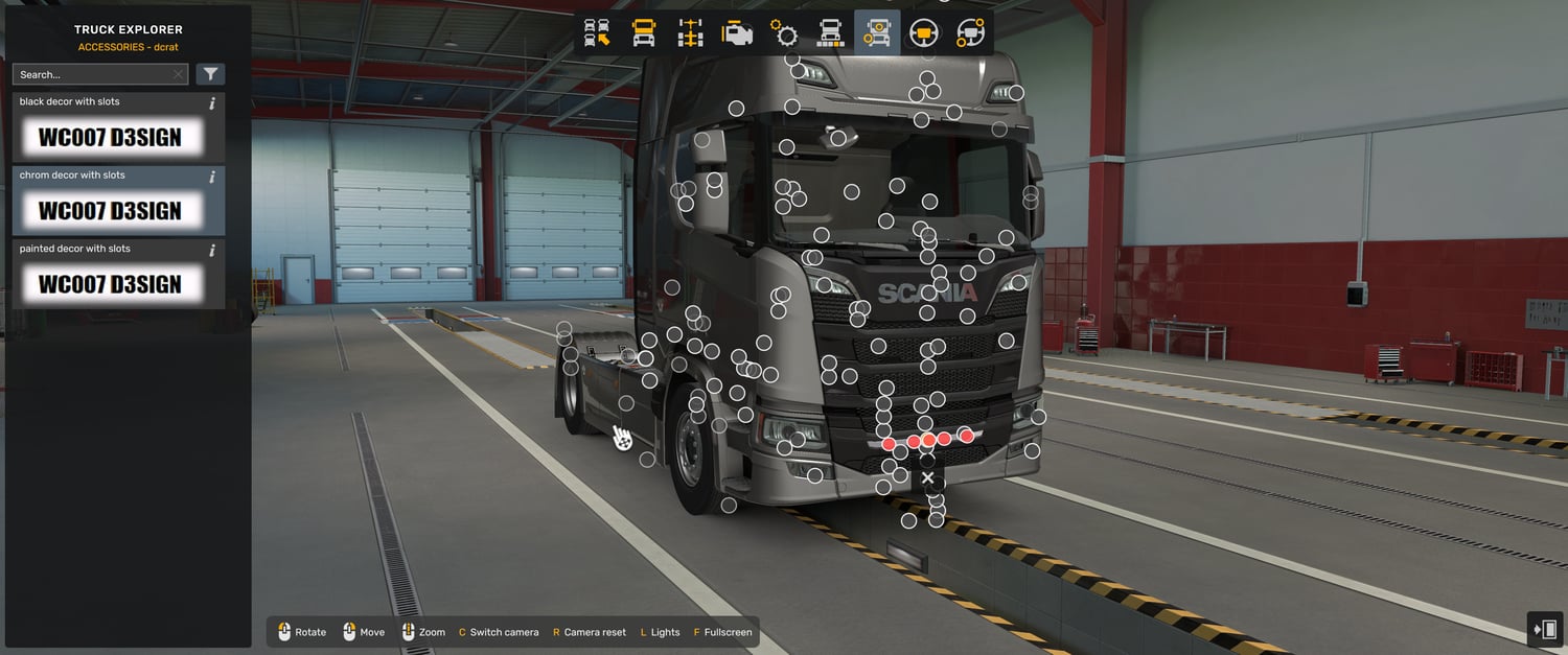 Scania NG decoratin mod works only with new scania no spoiler mod (1.58 version), not work with V1 version and Base game Scania truck
