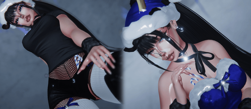 ANTLERS | CANDY CANES,CHOKER,CUFFS,DEER SET,NECK BOW,SANTA HAT | GLASSES | NOSE SNOWFLAKE | BODYSUIT,SOCKS | BOOTS | SHIRT,SHORTS