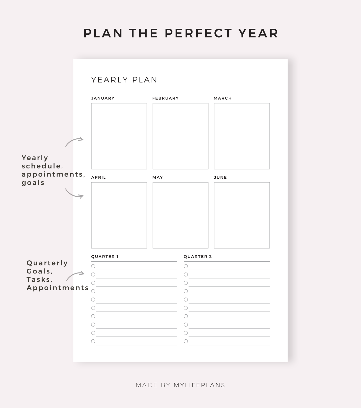 Quarterly Yearly Planner Digital, Compatible with Goodnotes, Notability, Ipad