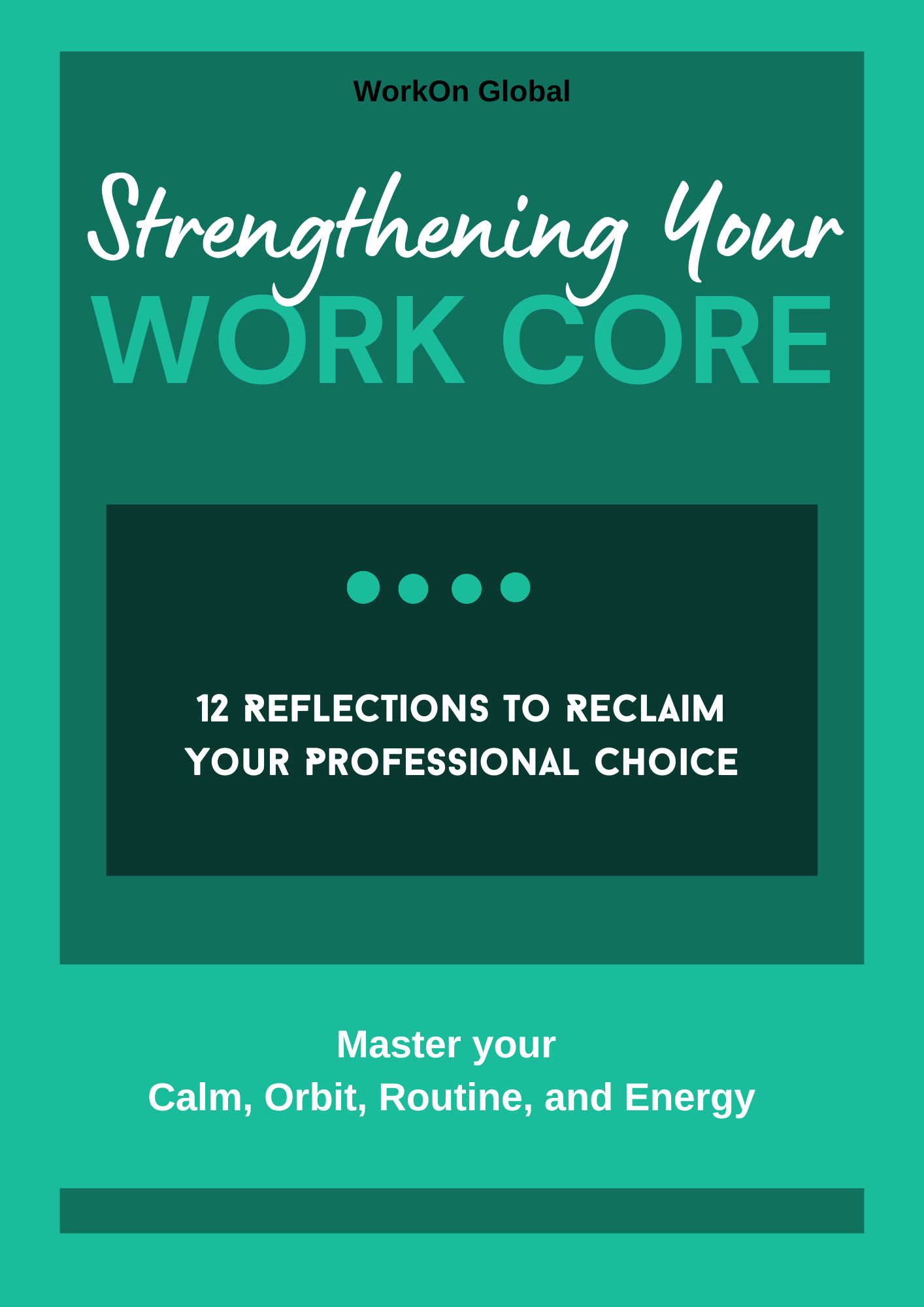 This 54-page guide provides 12 deep self-reflections on the 4 pillars of professional stability and mental resilience: Calm, Orbit, Routine, and Energy (CORE). Designed for leaders, managers, and high-performing professionals, this eBook offers a strategic blueprint to move beyond simple stress management and toward sustainable work-life integration.