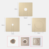 This wall hole cover measures 90mm x 90mm. The hole diameter is three different centimeters: 12mm / 22mm / 50mm.