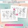 Book Lover Coloring Bookmark Set Printable, Digital Bookmarks