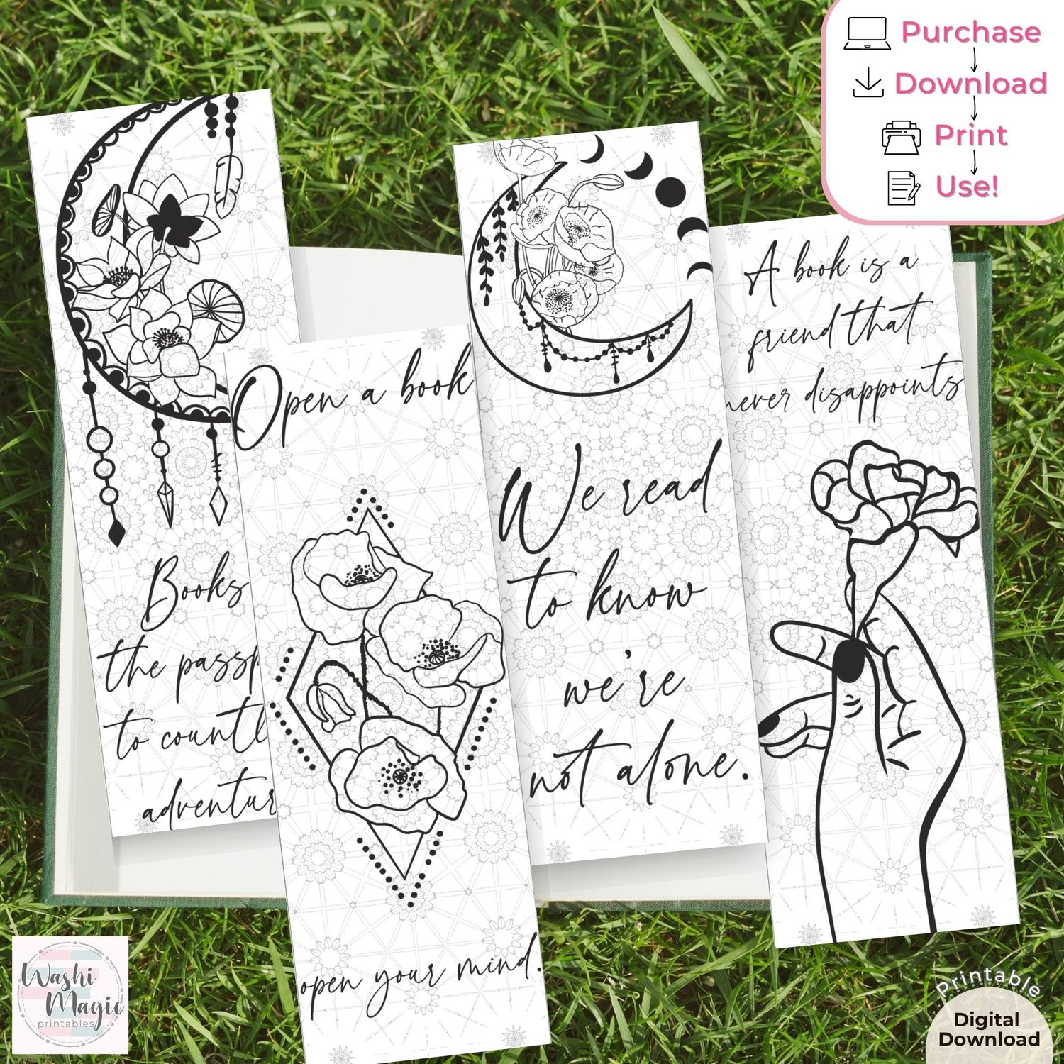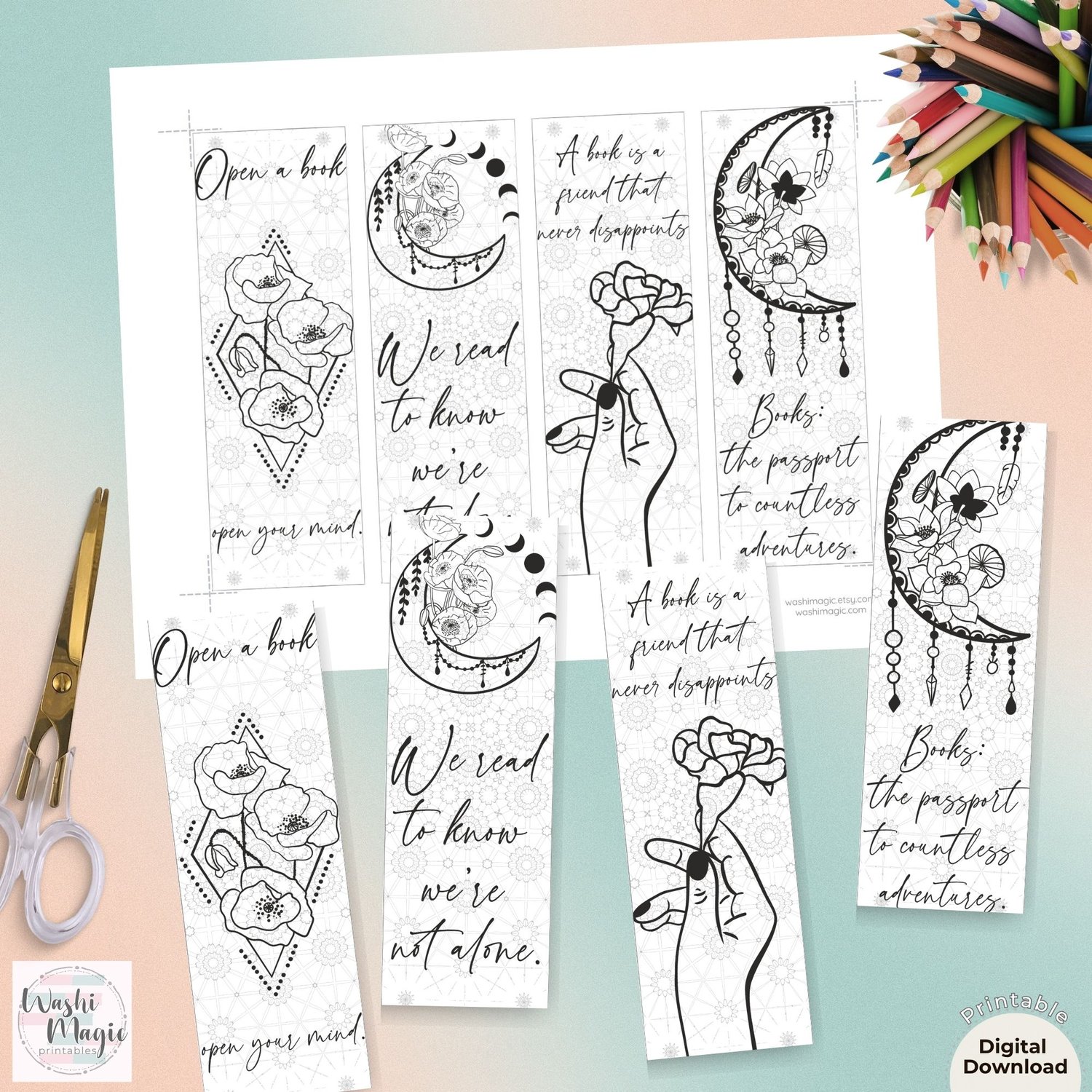 Dive into a world of creativity with these beautifully designed flower and moon bookmarks double as coloring pages, making them a unique gift for book lovers. Whether for personal use or as a thoughtful present, these downloadable treasures add a splash of color to your reading experience.