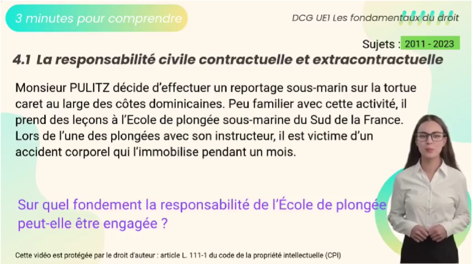 - Apprécier le respect des conditions de mise en œuvre de la responsabilité civile et les causes possibles d’exonération dans une situation juridique donnée.