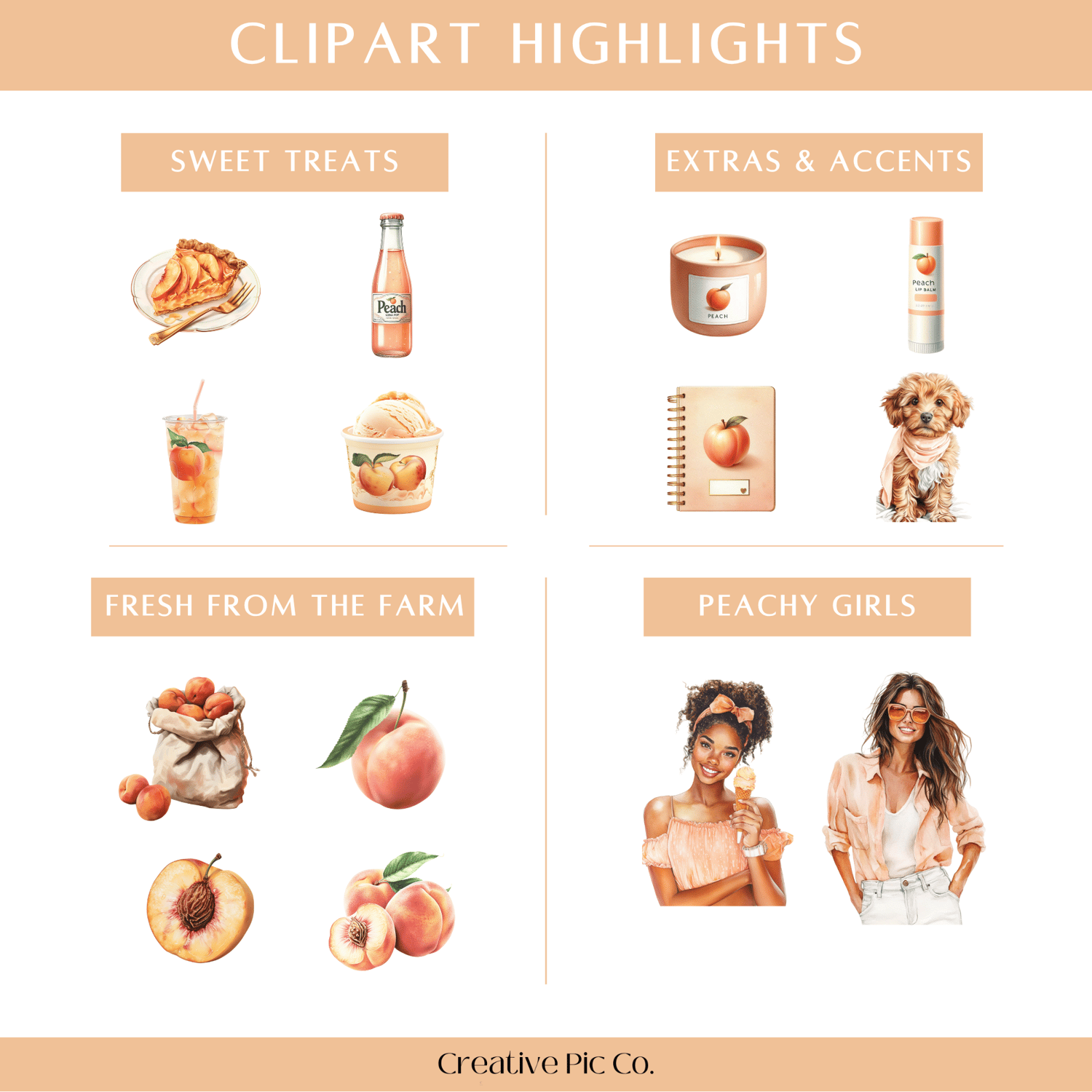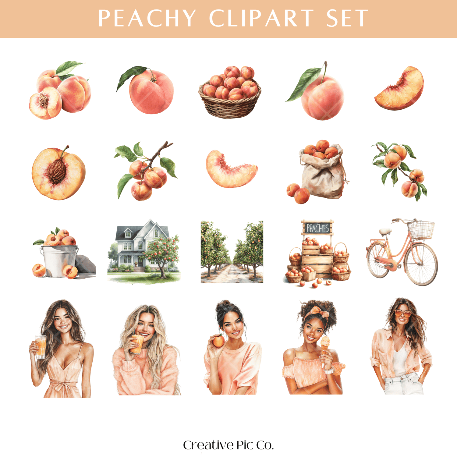 Bring a splash of sunshine to your projects with this peach-perfect clipart set! From juicy fruit and market baskets to cute outfits, cosy pets, and a dreamy farmhouse, it’s everything you need for warm, nostalgic, summer-inspired creations. Ideal for branding, journaling, seasonal planners, digital scrapbooks, and creative marketing with a fresh and fruity twist.