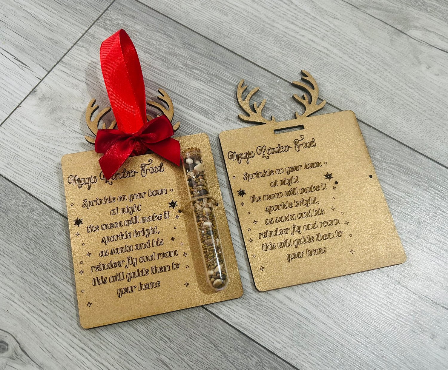 ribbon - bow - tube - bird seed - wooden reindeer holder.