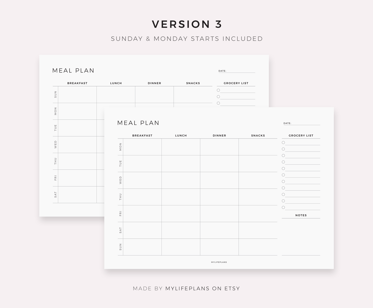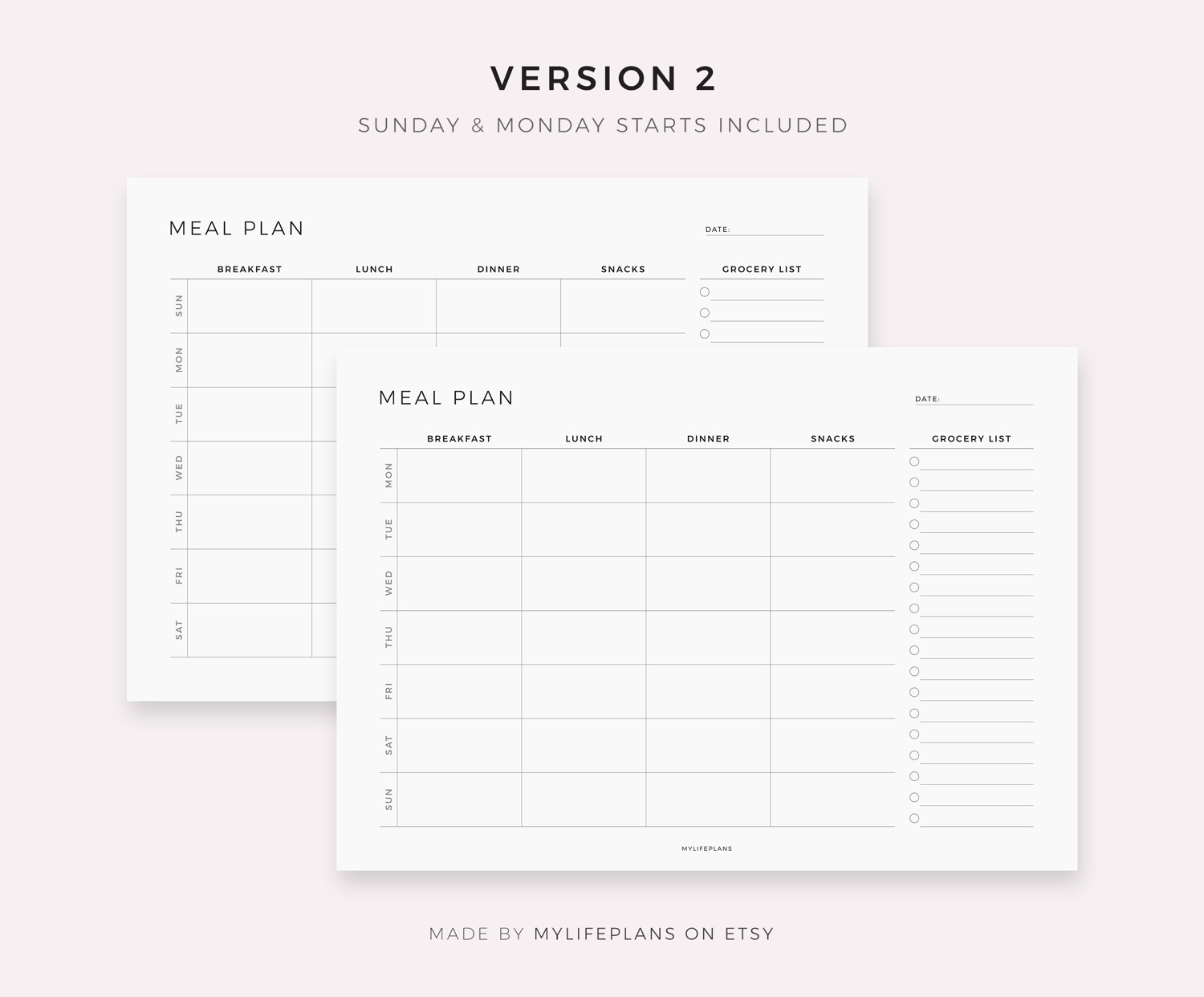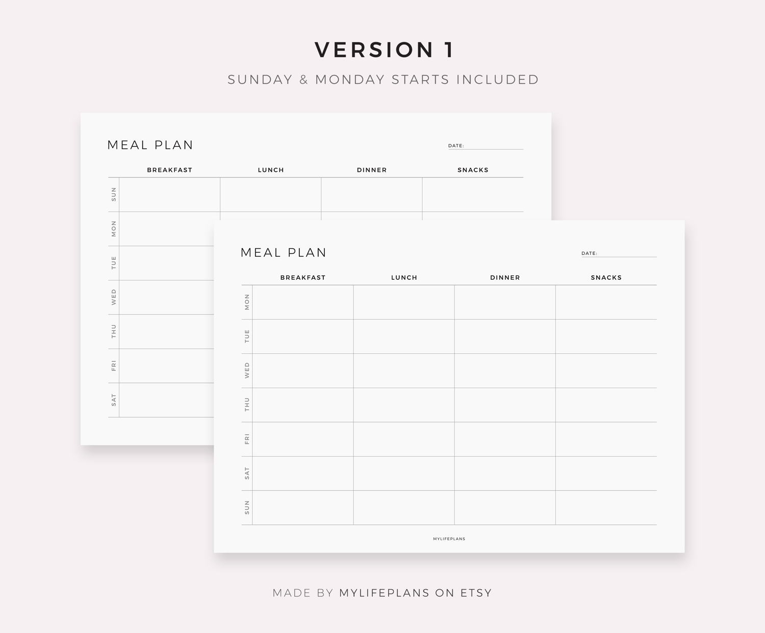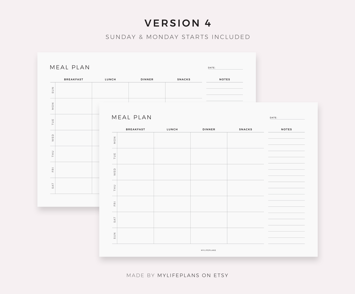 Weekly Meal Planner, Landscape, Compatible with Remarkable, Supernote, Kindle, Boox, Kobo
