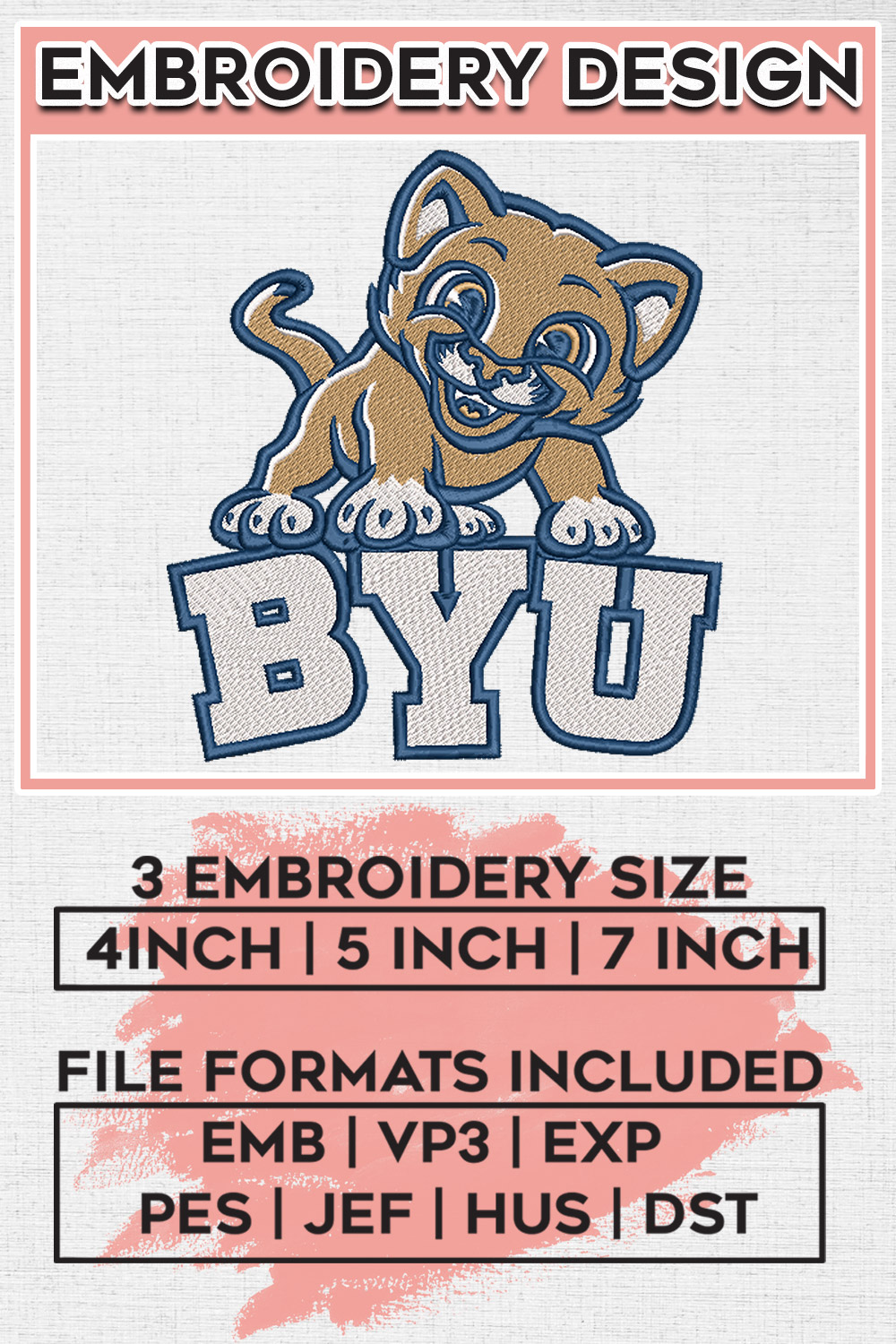 BYU Cougars College Football Team Mascot Logo Embroidery Designs, NCAA BYU Cougars Machine Embroidery Files, NCAA Logo embroidery designs, NCAA BYU Logo, Digital Download