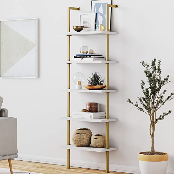HELIOS 5-Shelf Modern Bookcase, Open Wall Mount Ladder Bookshelf