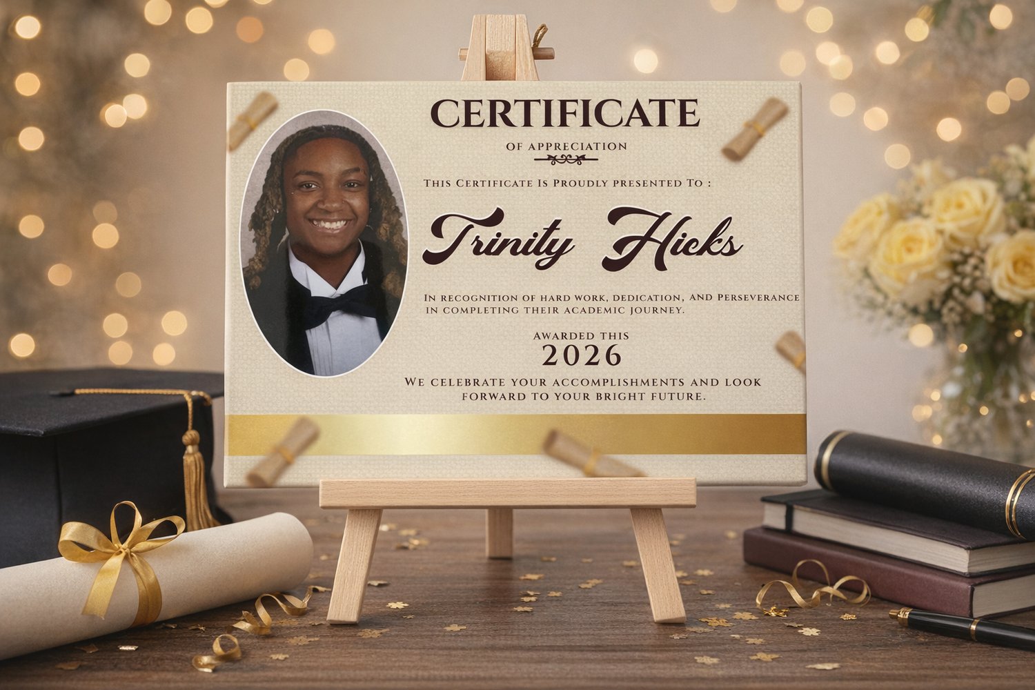 - Customizable Photo Frame: A dedicated oval space to add a portrait or graduation photo.