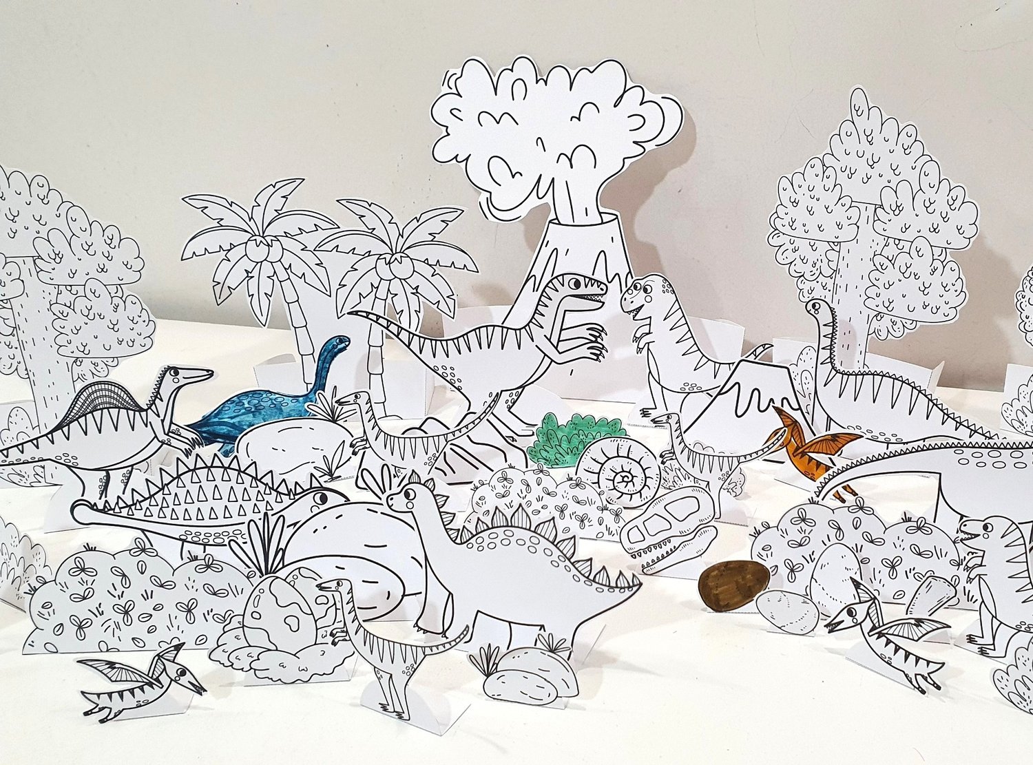 ✿ Just color & cut out details like trees, mountains and adorable dinosaurs, then set up your very own dinosaur diorama.