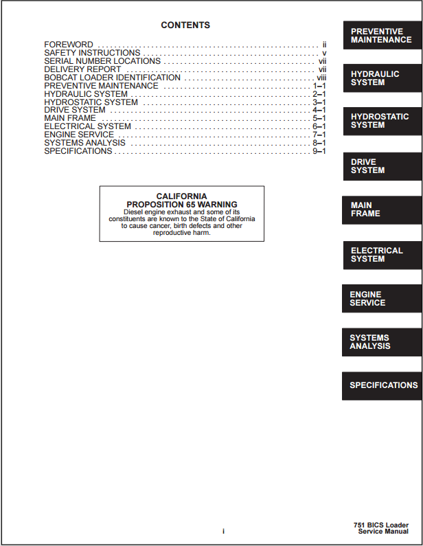 1997 Bobcat 751 Skid Steer Service Manual