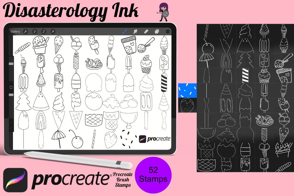 Icecream Set 1 Procreate Brush Stamps, 52 Ice Cream Stamps