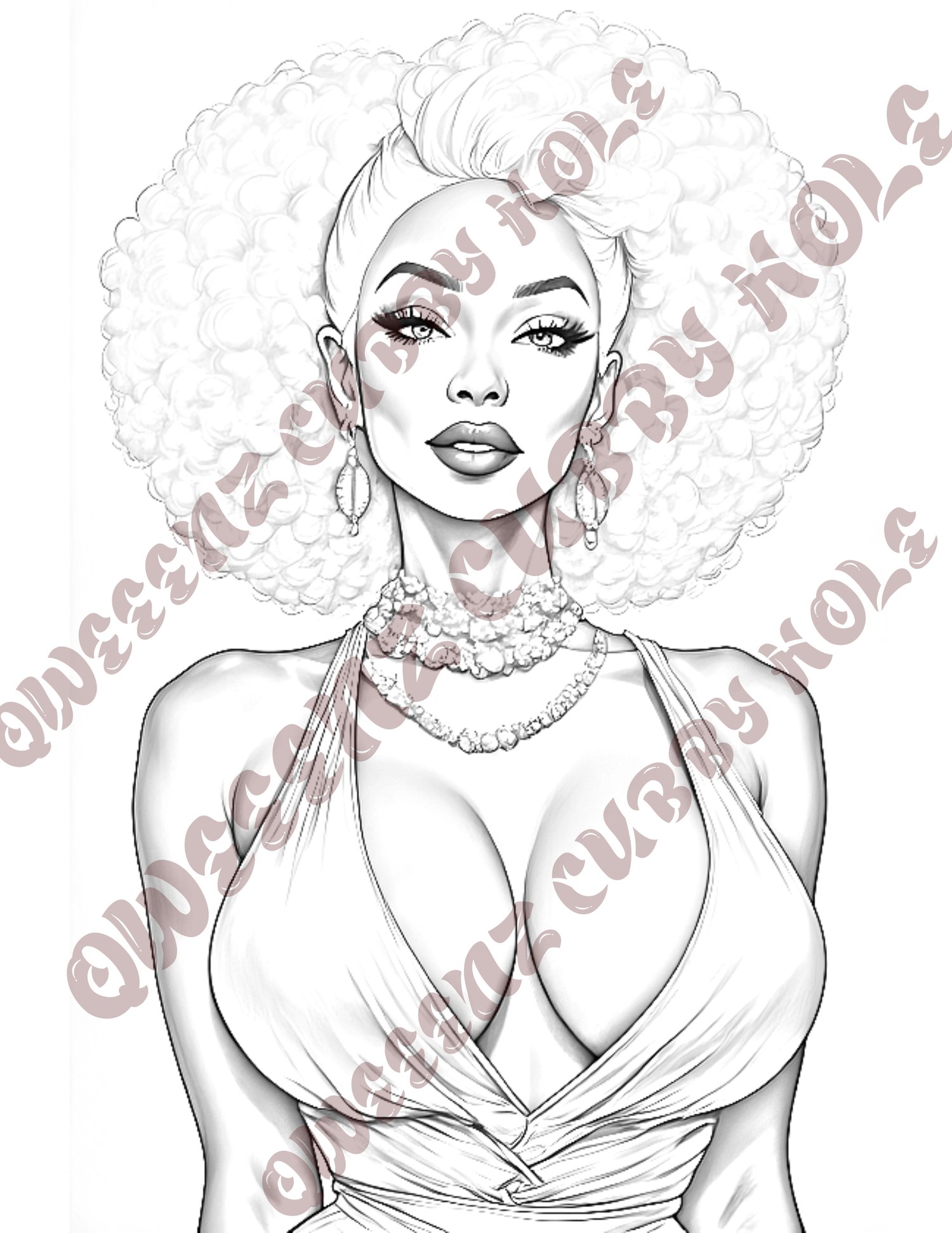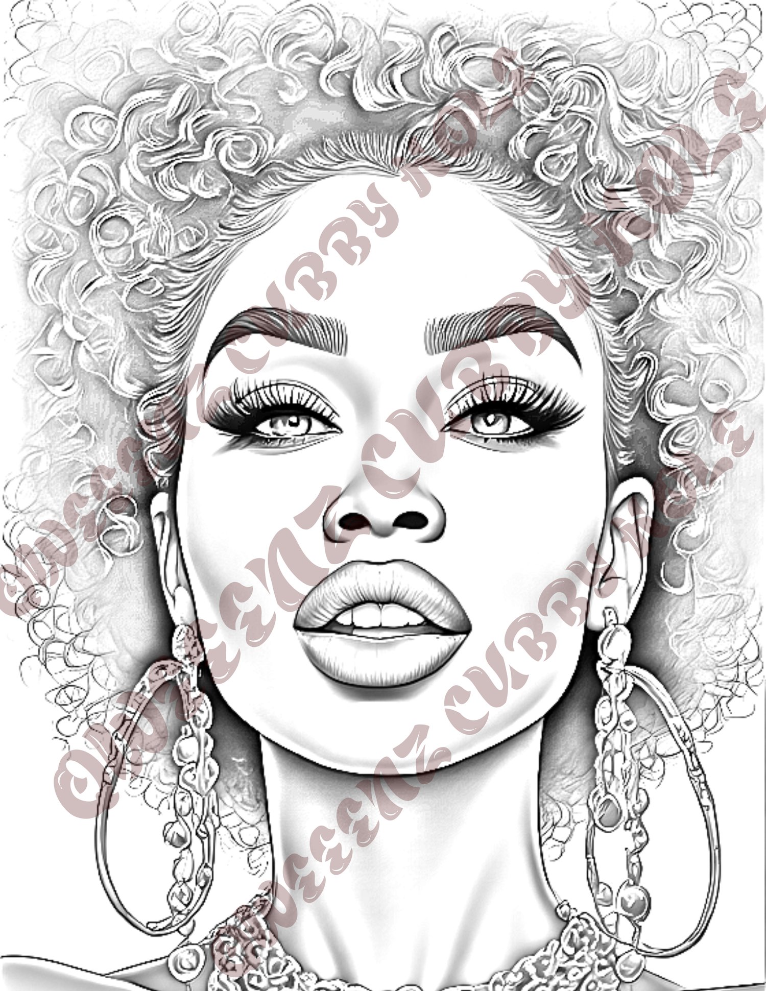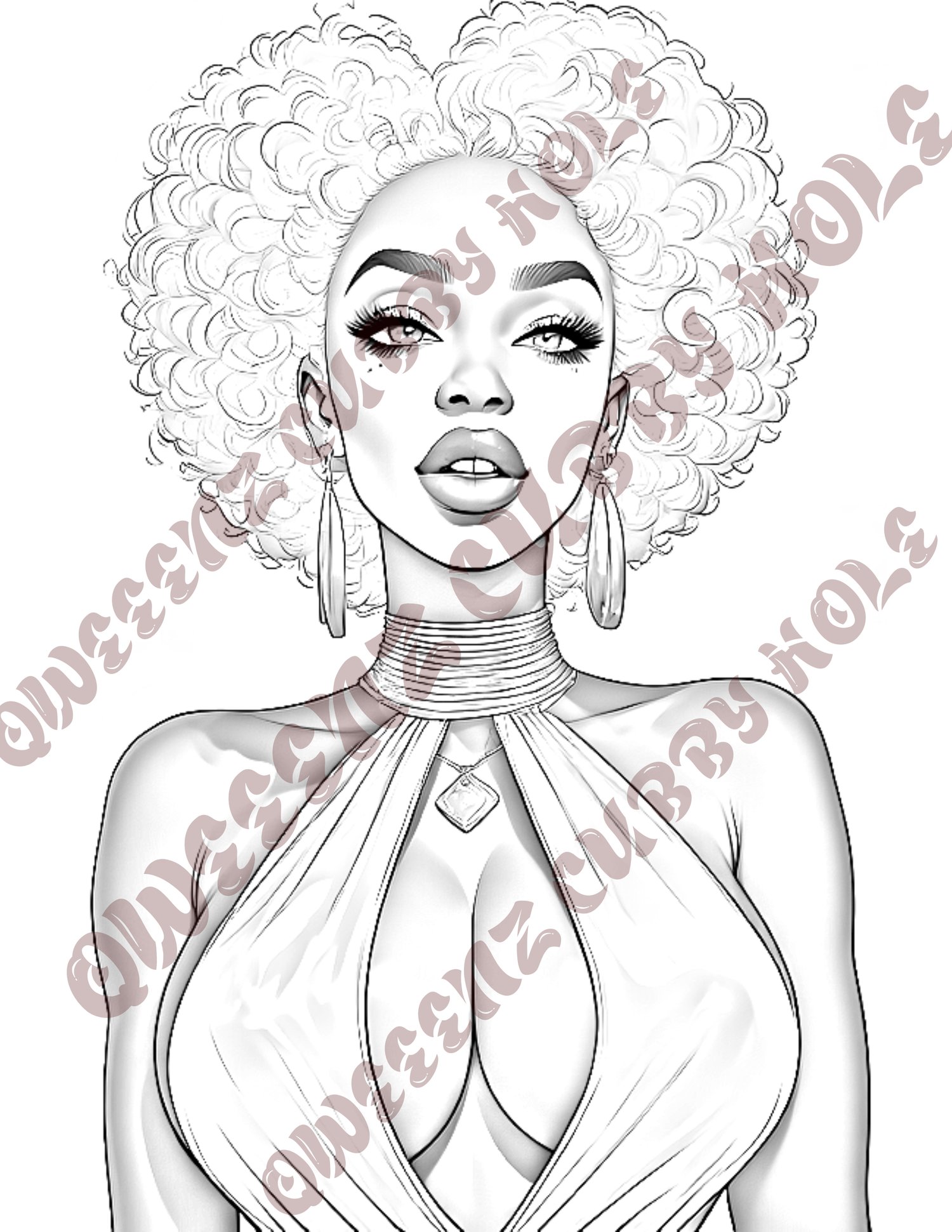 PACKAGE 2 (zip) -- 10 AFRO QWEEN COLORING PAGE DUOS