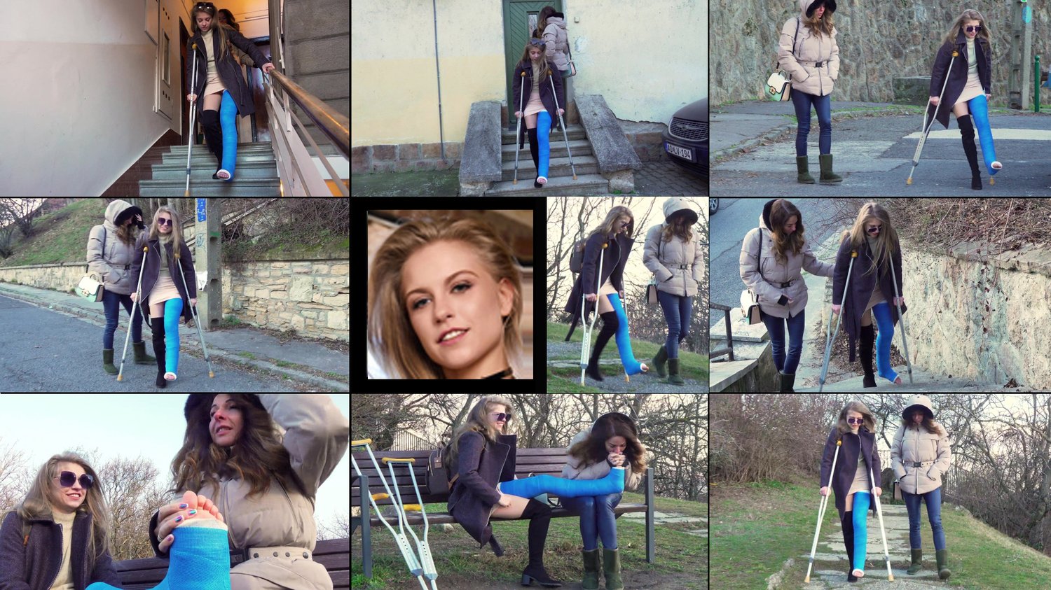 After having her leg set with a full-length leg cast Amydoux finds herself in a hospital room wiggling her cold toes sticking out of the cast and massaging them to make her encased foot feel better. It's really not easy with her stiff leg unable to bend. The nurse comes in to check her and check the movement of her toes sticking out of her cast. Noting Amydoux's discomfort she offers to massage her wiggling toes. Which makes Amydoux feel better and offers her a trick to do it when she isn't there that makes it easier to get to her casted toes: When relaxing with her single shoe on her good foot off, just use the toes of her good foot to massage and warm the toes on her casted foot. As the nurse leaves the room Amydoux tries it. A great hospital foot play and foot massage clip and a must see for enthusiasts. (Note this version is 20 seconds shorter and edits out the scenes when her gown falls off her shoulders).