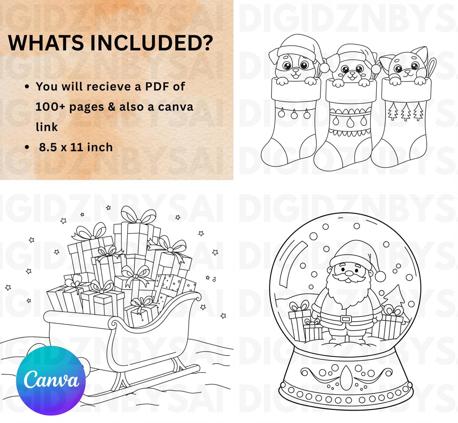 100+ Black & White Coloring Pages β Santa, reindeer, snowmen, gingerbread houses, gifts, ornaments, winter animals, cozy holiday scenes & more