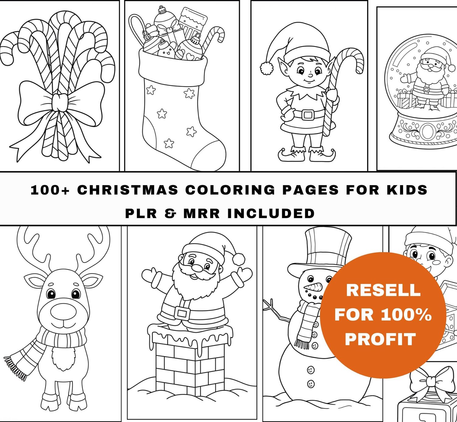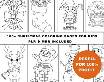 Christmas Coloring Book PLR Bundle , 100+ Printable Pages for Kids, Holiday Coloring Activity Pack, Editable & Resell Rights