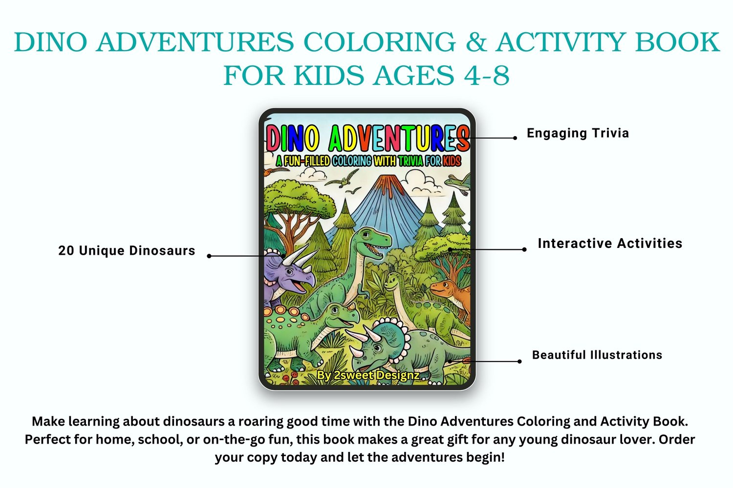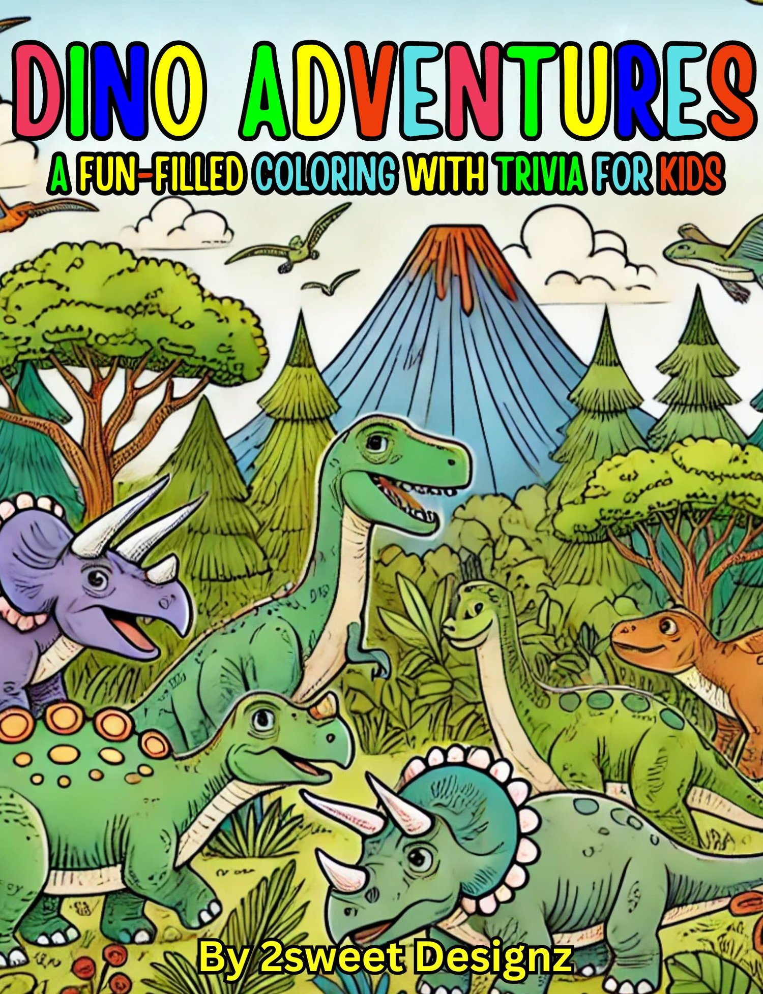 Unleash your child's creativity and curiosity with the Dino Adventures Coloring and Activity Book! This fun-filled book is perfect for young dinosaur enthusiasts and budding artists. Designed by 2Sweet Designz, this book combines the excitement of coloring with engaging trivia questions about 20 fascinating dinosaurs. Each page offers educational fun and encourages kids to learn more about these incredible prehistoric creatures.