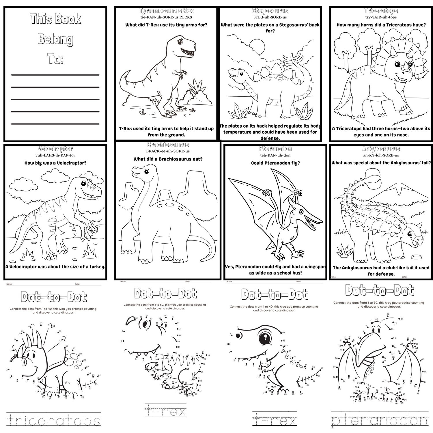 - Interactive Activities: In addition to coloring pages, this book includes dot-to-dot activities that help kids practice counting and discover cute dinosaur illustrations. Activities range from connecting the dots from 1 to 40, 1 to 60, and even 1 to 80.