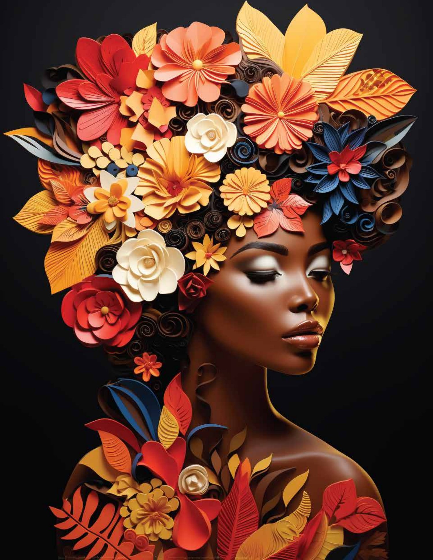Nubian Queen in exquisite Floral Portrait Coloring Pages
