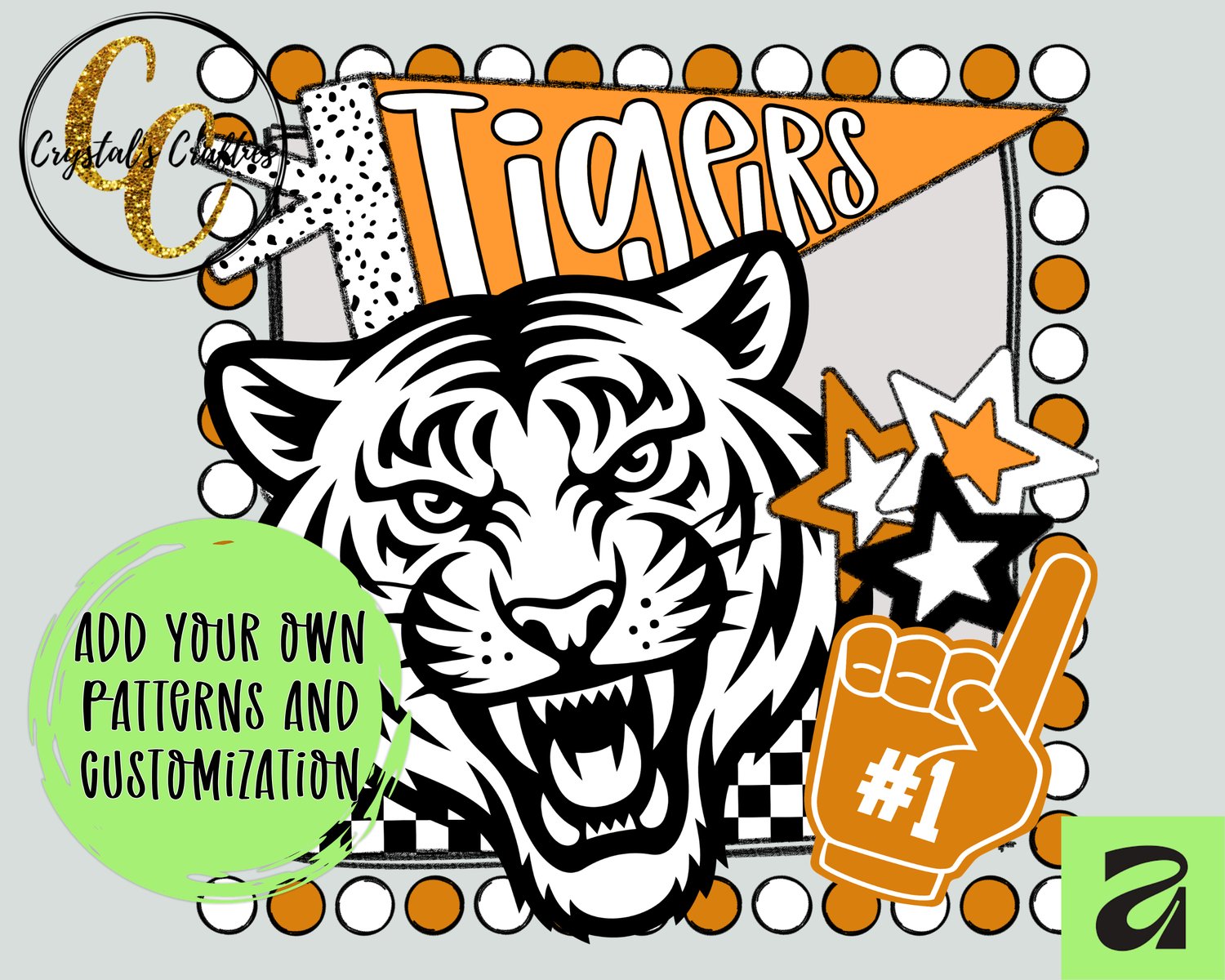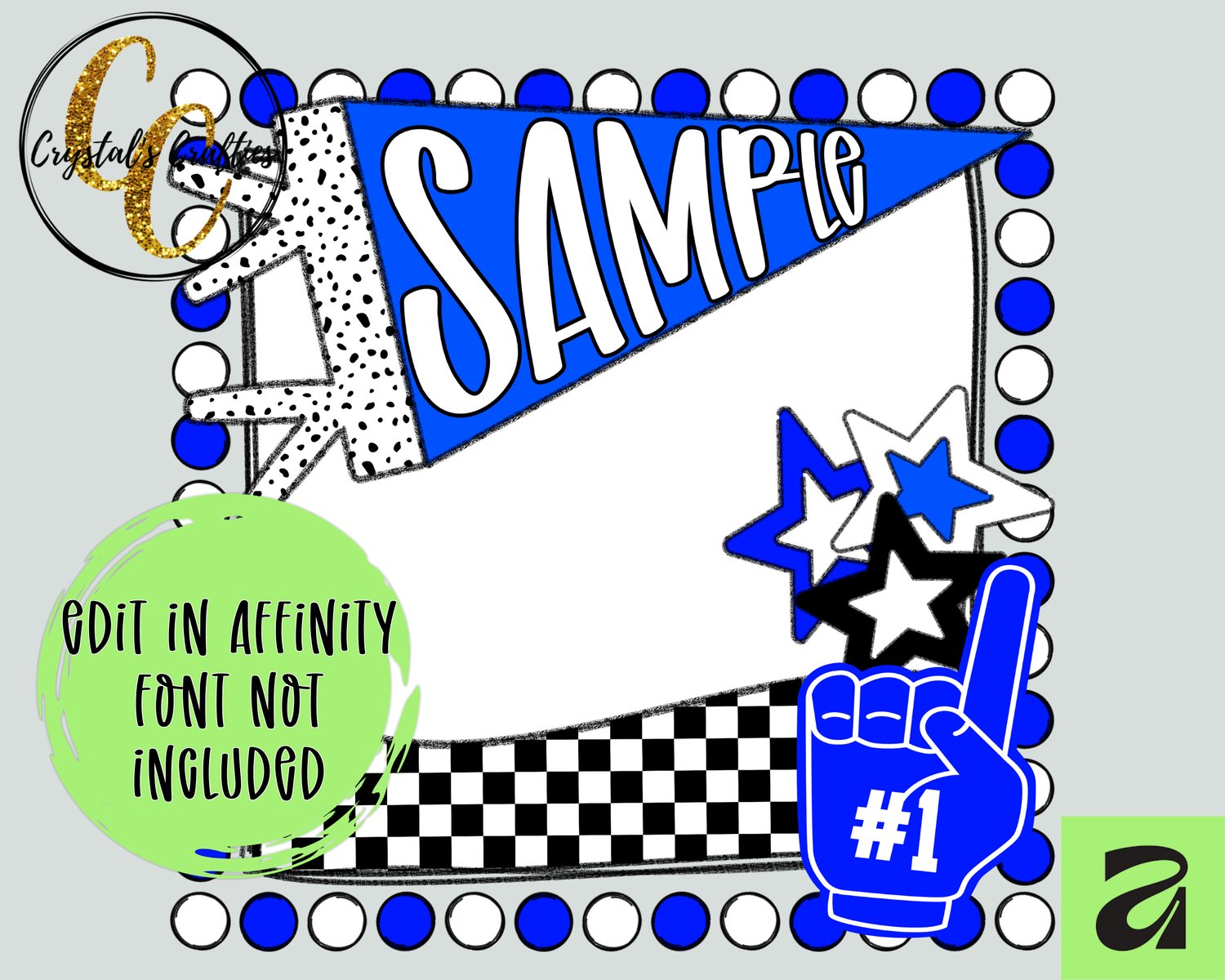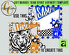 Create trendy, eye-catching team spirit designs with this Dot Border Team Spirit Affinity Template! Perfect for game day graphics, school spirit shirts, and boutique-style sports designs.