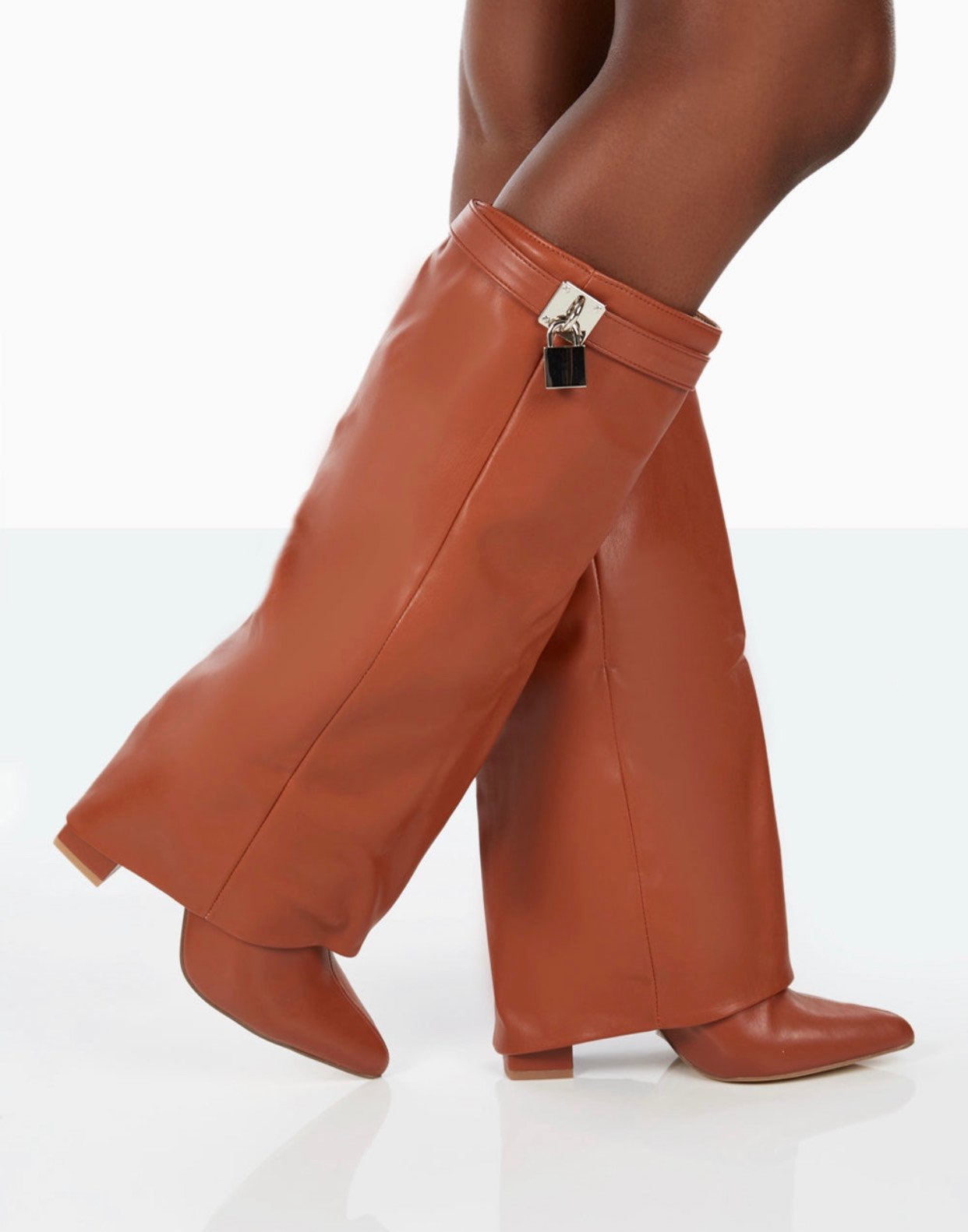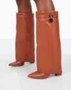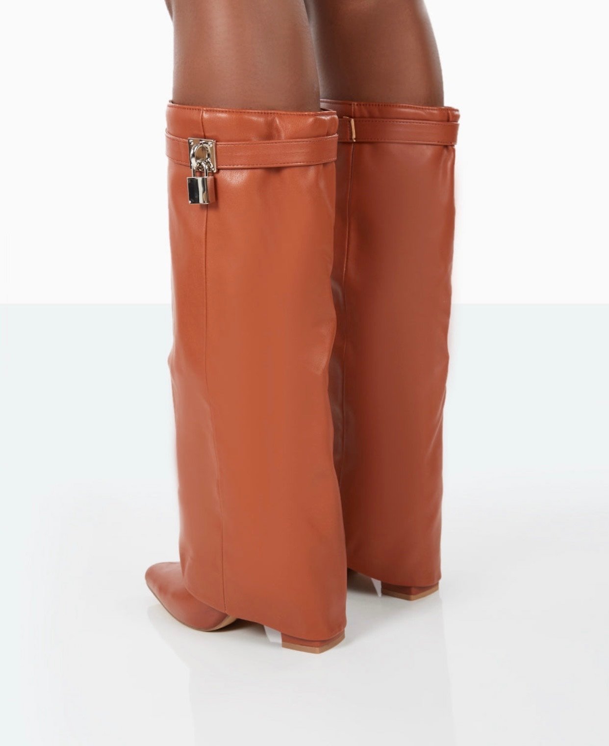 ECHO TAN GRAIN PU POINTED TOE KNEE HIGH BOOTS