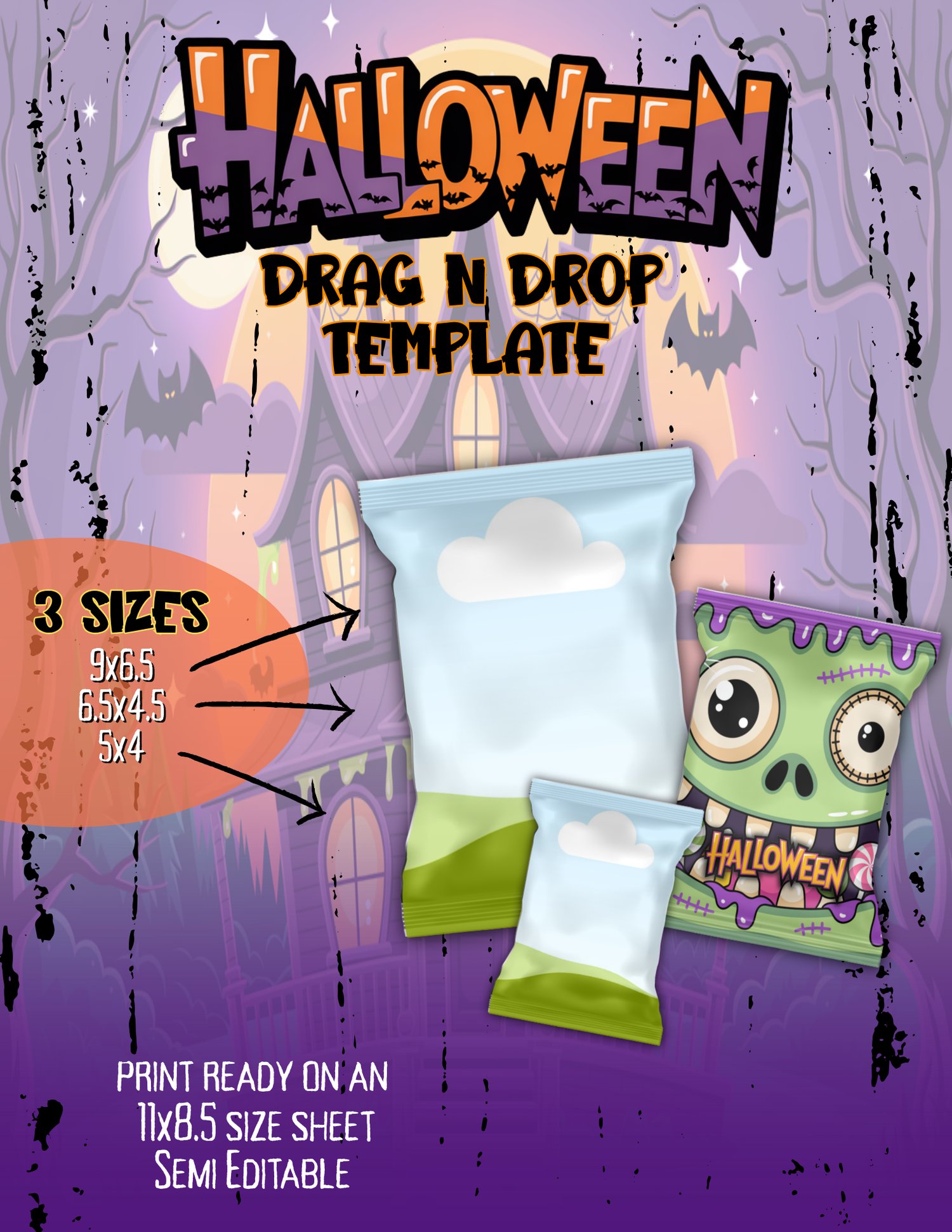 This Halloween Drag N Drop Template makes creating your own treat and chip bags quick, simple, and fun. Whether you’re crafting for parties, events, or selling, these templates are designed to save you time while giving your bags a professional look.