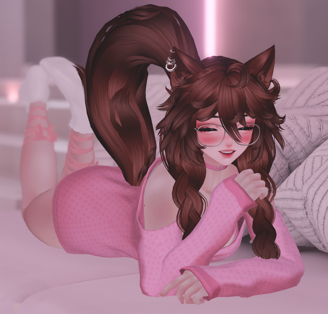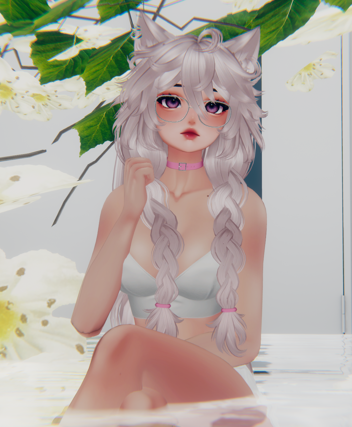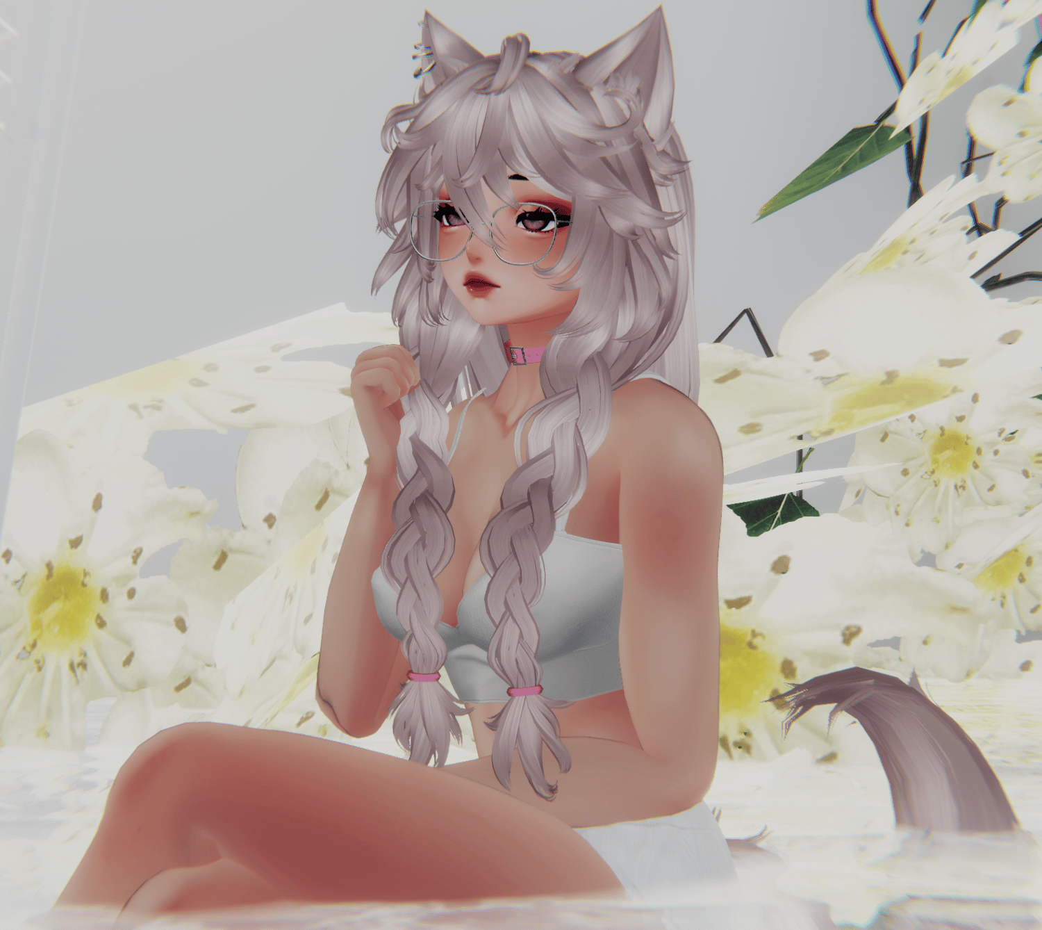 - (She has a collider in her chest for her front braids.)