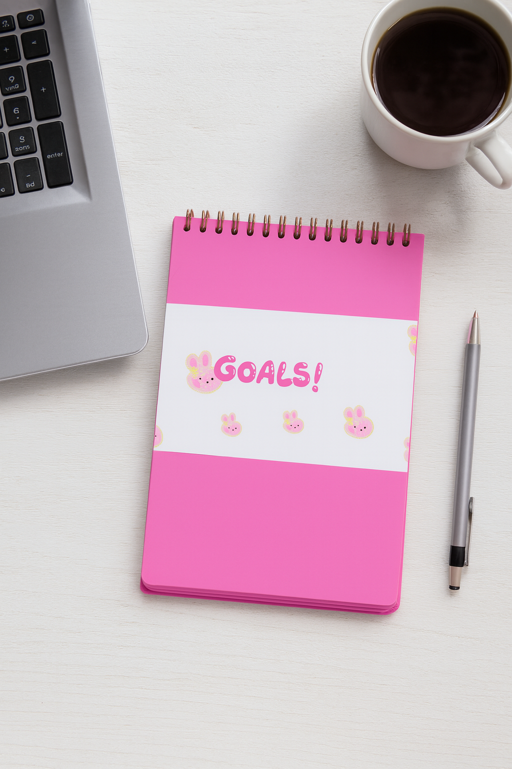Stay organized and inspired with this adorable Pink Bunny Goals Notebook!