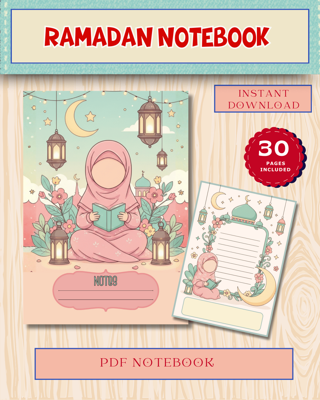 نوت بوك رمضان المكمّلة لكروت أدعية رمضان للبنات، مصممة خصيصًا للبنات من سن 10 سنوات فما فوق لمساعدتهم على التعبير عن مشاعرهم، كتابة التأملات، وتثبيت الدعاء كعادة يومية خلال شهر رمضان.