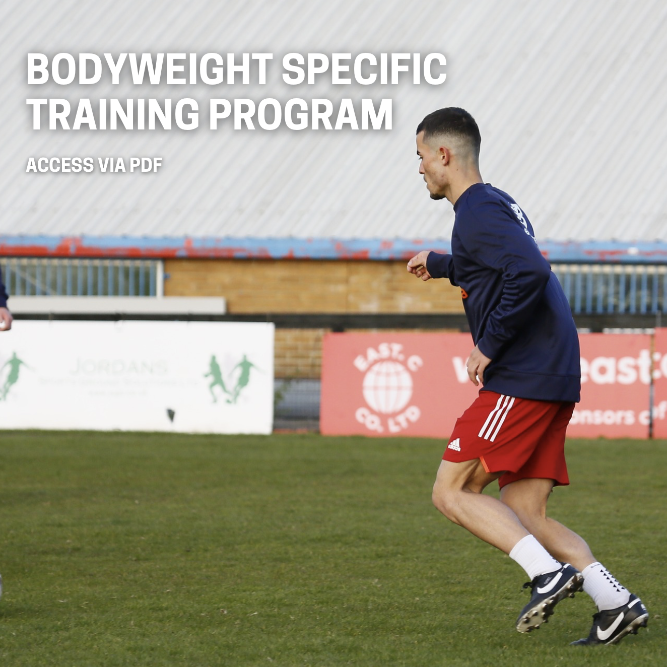 No access to a gym? No excuses. This Bodyweight Training Program is designed to help footballers build strength, endurance, and athleticism using only their body weight. Perfect for training at home, on the road, or anywhere.