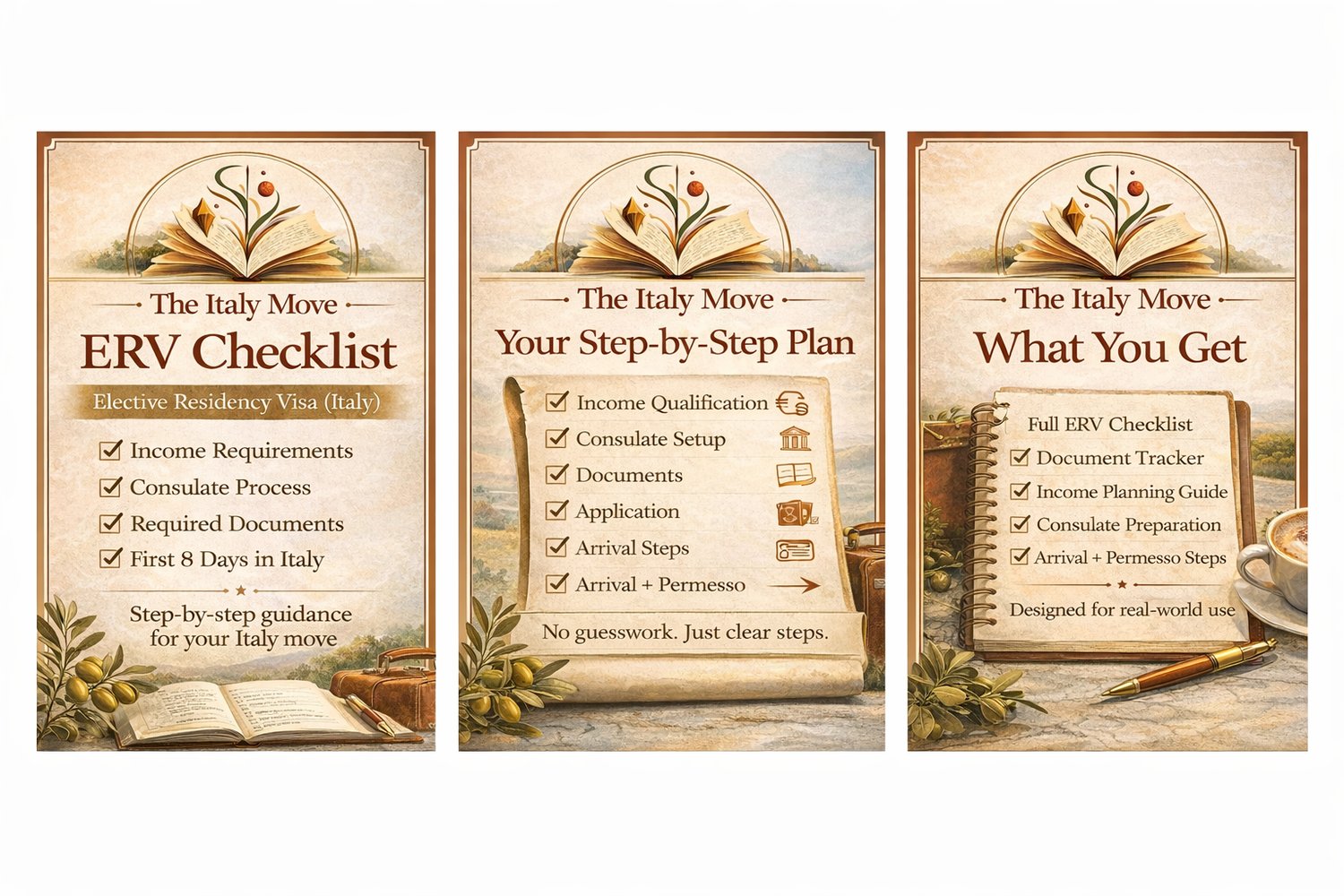 If you are planning to move to Italy without working for an Italian employer, the Elective Residency Visa (ERV) is one of the most common paths. But the process can quickly become overwhelming. Income requirements, consulate procedures, document preparation, and timing all play a critical role—and missing even one detail can delay or derail your application. This checklist was created to give you a clear, structured way to prepare your ERV application with confidence.