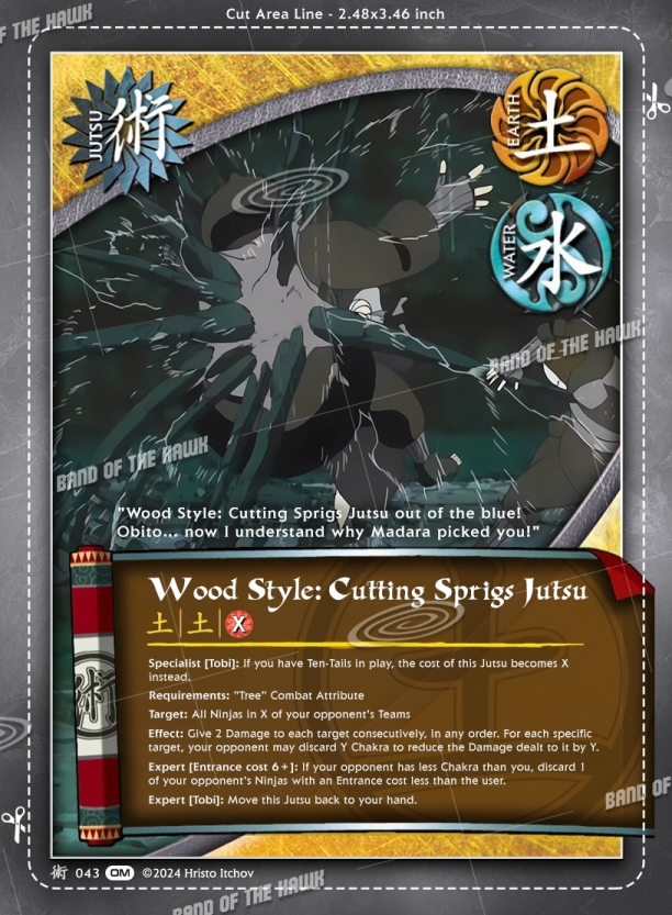 j043 - Wood Style Cutting Sprigs Jutsu Jutsu card from our Obito & Madara card set for Naruto CCG.