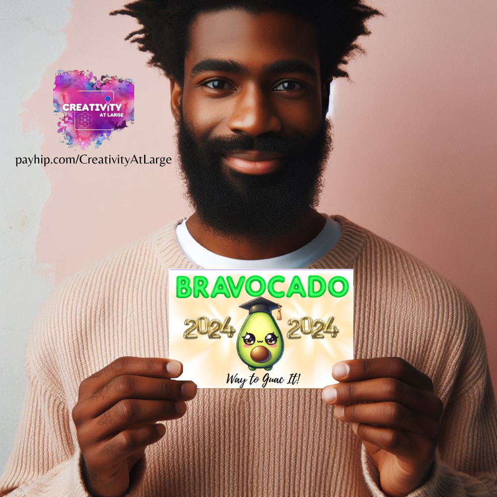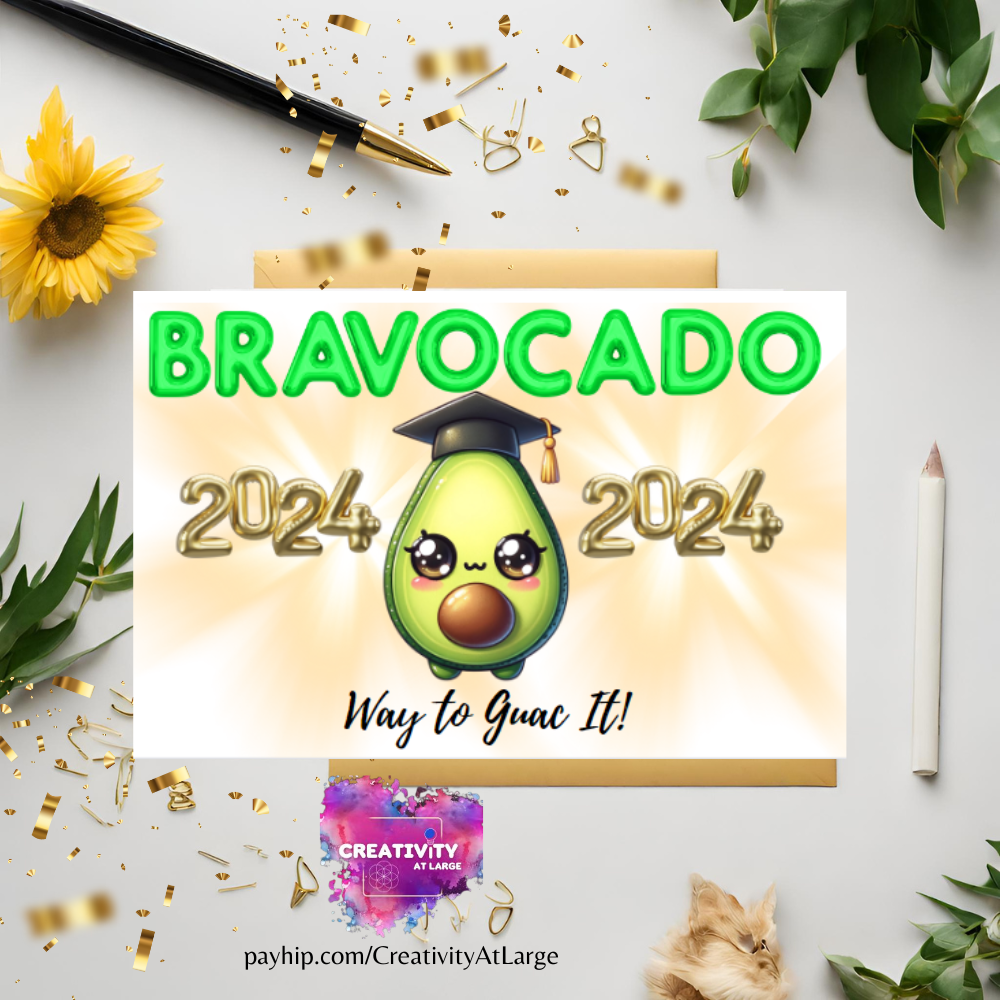 Chibi Avocado Graduation Card 2024 - 'Bravocado, Way to Guac It!' Design