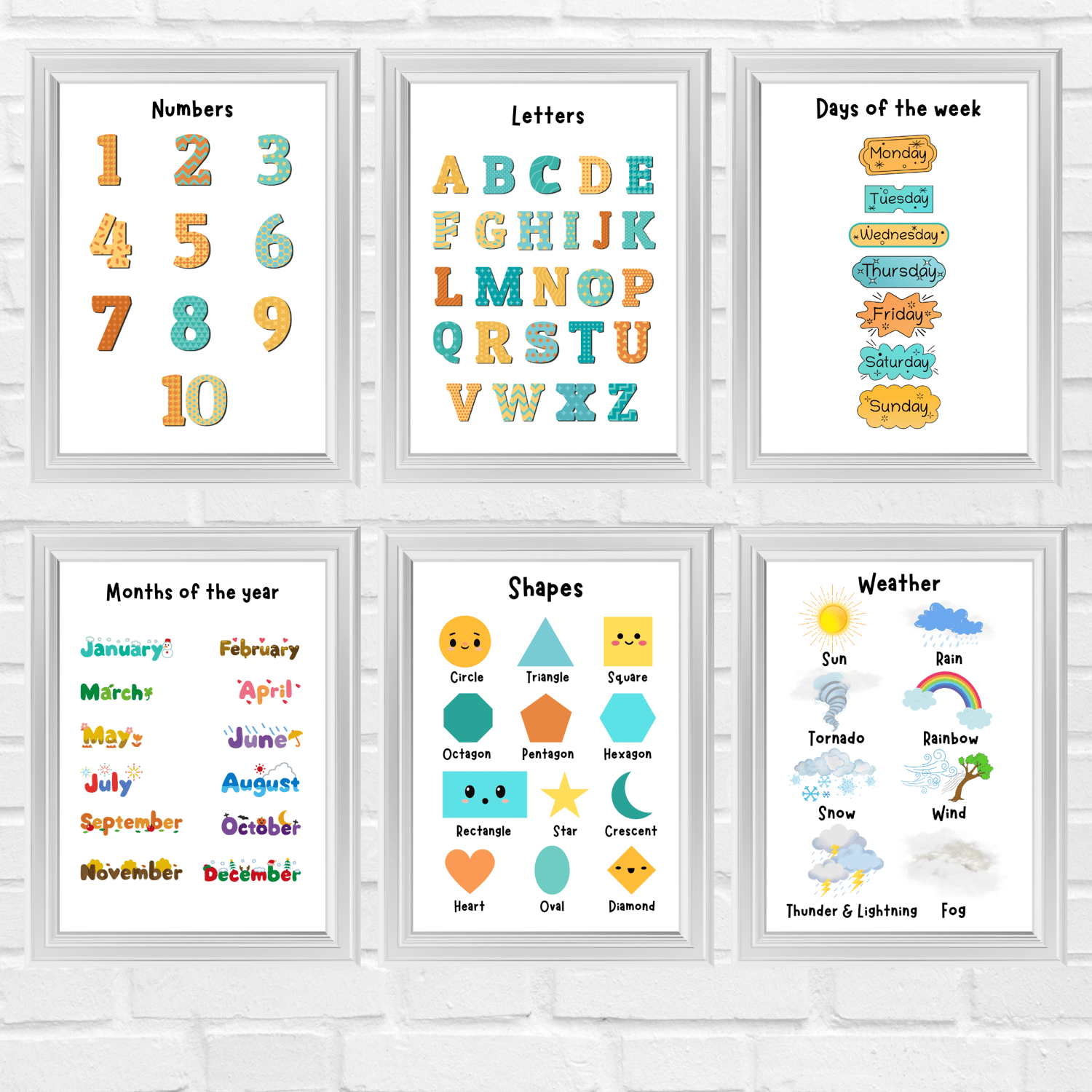 Bring colourful learning to your children's walls, with this pack of 8 Educational posters! From learning numbers and the alphabet, to learning about seasons and different shapes. There's something here for everyone. Based around primary school/Kindergarten learning.