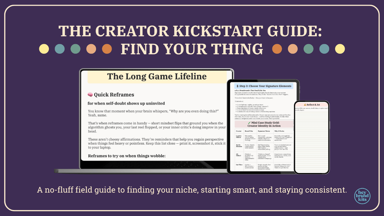 This isn’t just another “post more” pep talk. The Creator Kickstart Guide is your honest, actionable, psychology-backed roadmap to starting smart, finding your thing, and building sustainable momentum as a content creator.