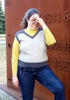 Sono nata e ancora vivo a Sesto San Giovanni, città con un lungo e glorioso passato industriale. Uno dei suoi soprannomi è “La città delle fabbriche” e quasi la metà del territorio comunale è stato occupato, in passato, dagli stabilimenti, soprattutto acciaierie (ma anche la fabbrica che produceva il Campari). I miei ricordi di bambina sono legati alla fuliggine metallica sui davanzali delle finestre e alle colonne di fumo che si alzavano dalle ciminiere. Si disse che l’aria respirata a Sesto equivalesse, per i polmoni, a 80-100 sigarette fumate al giorno per i polmoni. Nelle prime ore del mattino, gli operai scendevano dai treni provenienti da nord e si avviavano, a piedi o in bicicletta, in lunghe colonne verso gli impianti, fermandosi prima del lavoro a bere un veloce “grigioverde” (un cocktail a base di vino bianco, grappa e menta) nei bar e nei circoli cooperativi. Il gilet “La città delle fabbriche” è ispirato a quelle colonne di fumo, croce e delizia della città. Le colonne di trecce di varia altezza si estendono dal bordo a coste (lavorato, come tutti gli altri bordi in colore contrastante) fino a quando desiderate. Il numero calante di trecce fa sì che il gilet sia più stretto in vita e più ampio attorno al petto, lasciando spazio al seno delle donne o alle spalle degli uomini. Un semplice scollo a V completa questo gilet lineare ma piuttosto interessante da lavorare, le cui spalle sono completate da un’ulteriore sezione a coste in colore contrastante. Lavorato in tondo dal basso verso l’alto, senza cuciture, “La città delle fabbriche” è realizzato con New Cedro di Borgo de’ Pazzi, una lana biologica al 100% con numerose opzioni di colore naturale. Il modello è scritto in modo per cui il posizionamento delle trecce sia totalmente libero. La m frequenza delle trecce determina la sagomatura del gilet in vita.