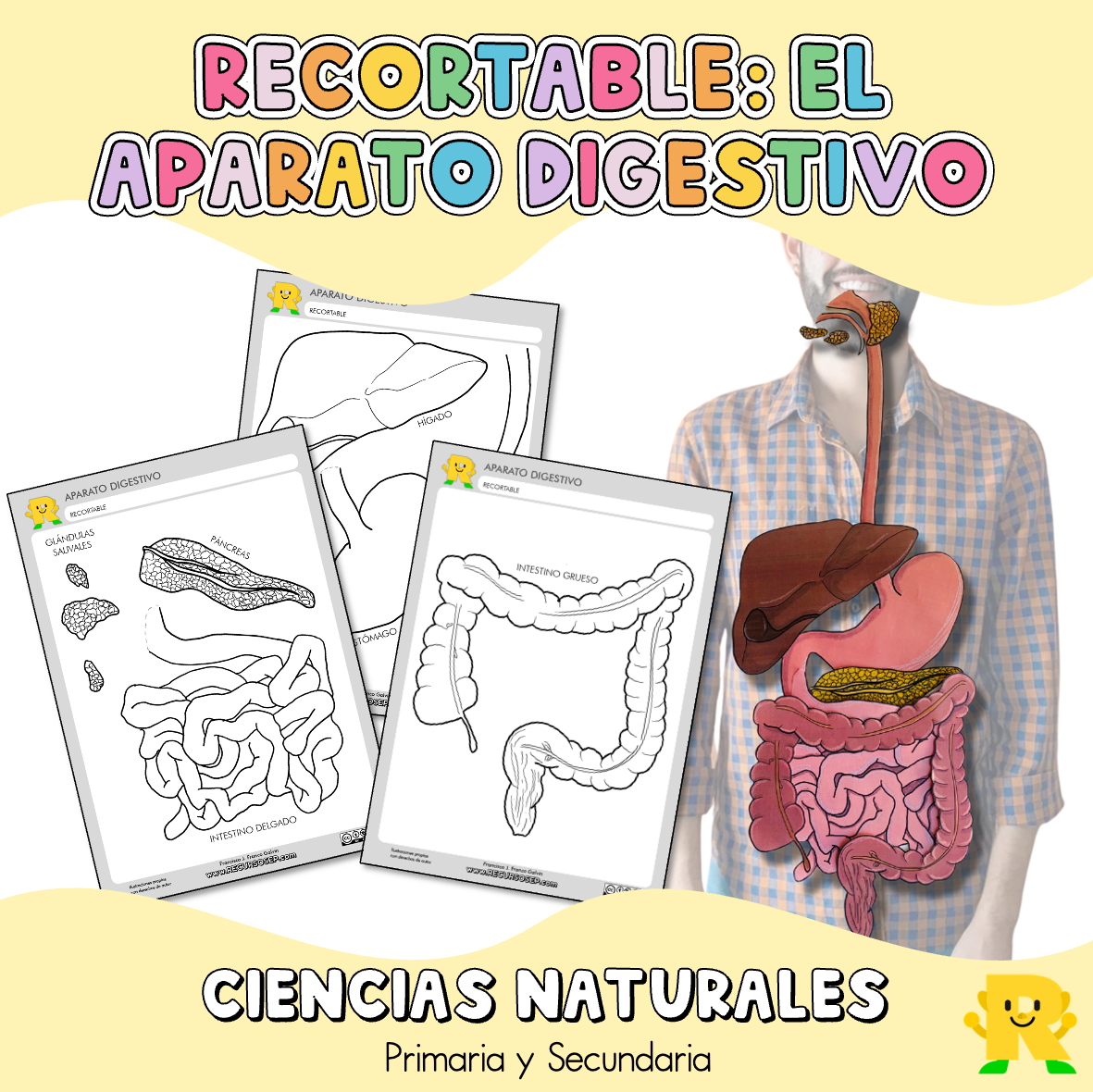 Además de los recortables, conseguirás otros materiales sobre el aparato digestivo.