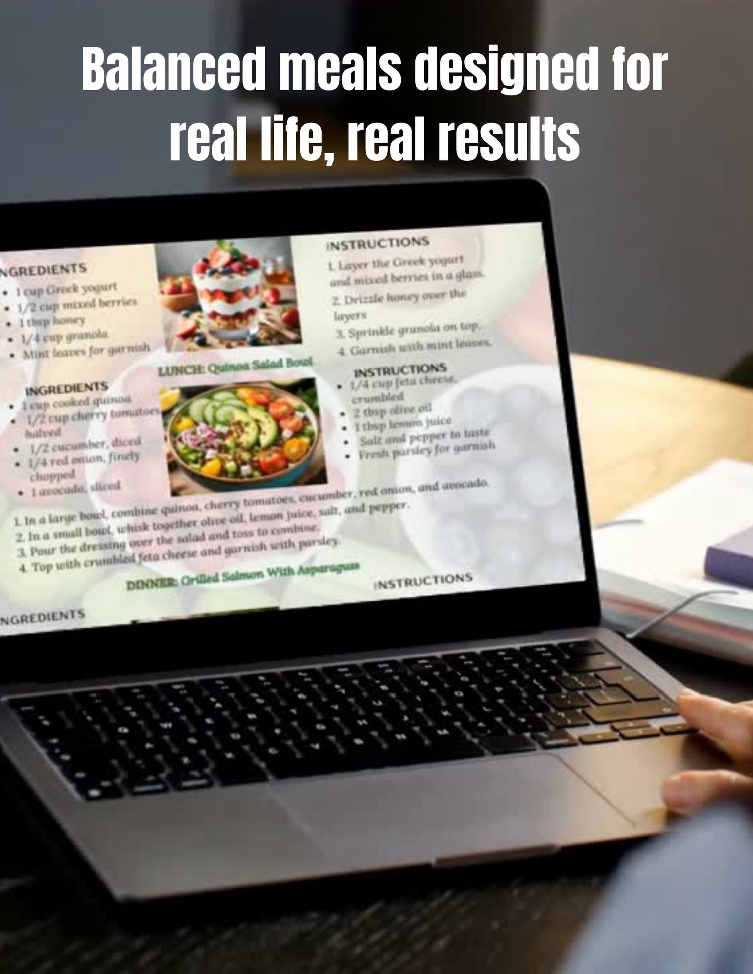 ✅ 7 Days of Done-For-You Meals: Breakfast, lunch, dinner, and snacks—all planned with fresh, wholesome ingredients.