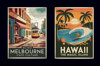 ✔ 5 South Pacific & Tropical Escapes – Design breathtaking posters of Sydney’s Opera House, New Zealand’s fjords, the beaches of Fiji, Tahiti’s overwater bungalows, and Hawaii’s lush islands with faded retro colors and dreamy typography.