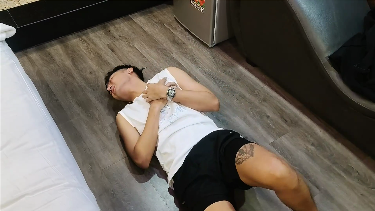 Driven by stubborn pride and the desire to prove himself, QīngSōng pushes far beyond his limits. Sweat drips, breath trembles, and his pulse grows wild and unstable. Still, he refuses to stop until his heart does. He collapses hard onto the floor, consciousness slipping away as his body shuts down.