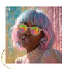 Pastel Premium Fashion PNG Stock Image: African American Woman with Pink & Blue Pastel Short Bob Cut with with Bangs & Mirrored Ombre Sunglasses, Youtube Covers, Social Media, Book Cover Designs, Storytelling, Stock Photos