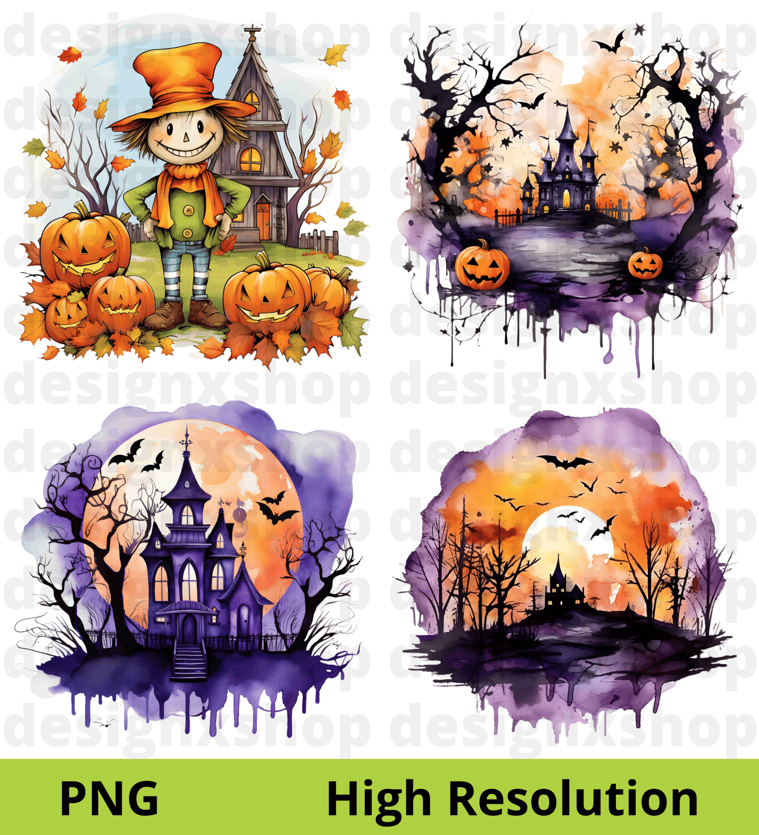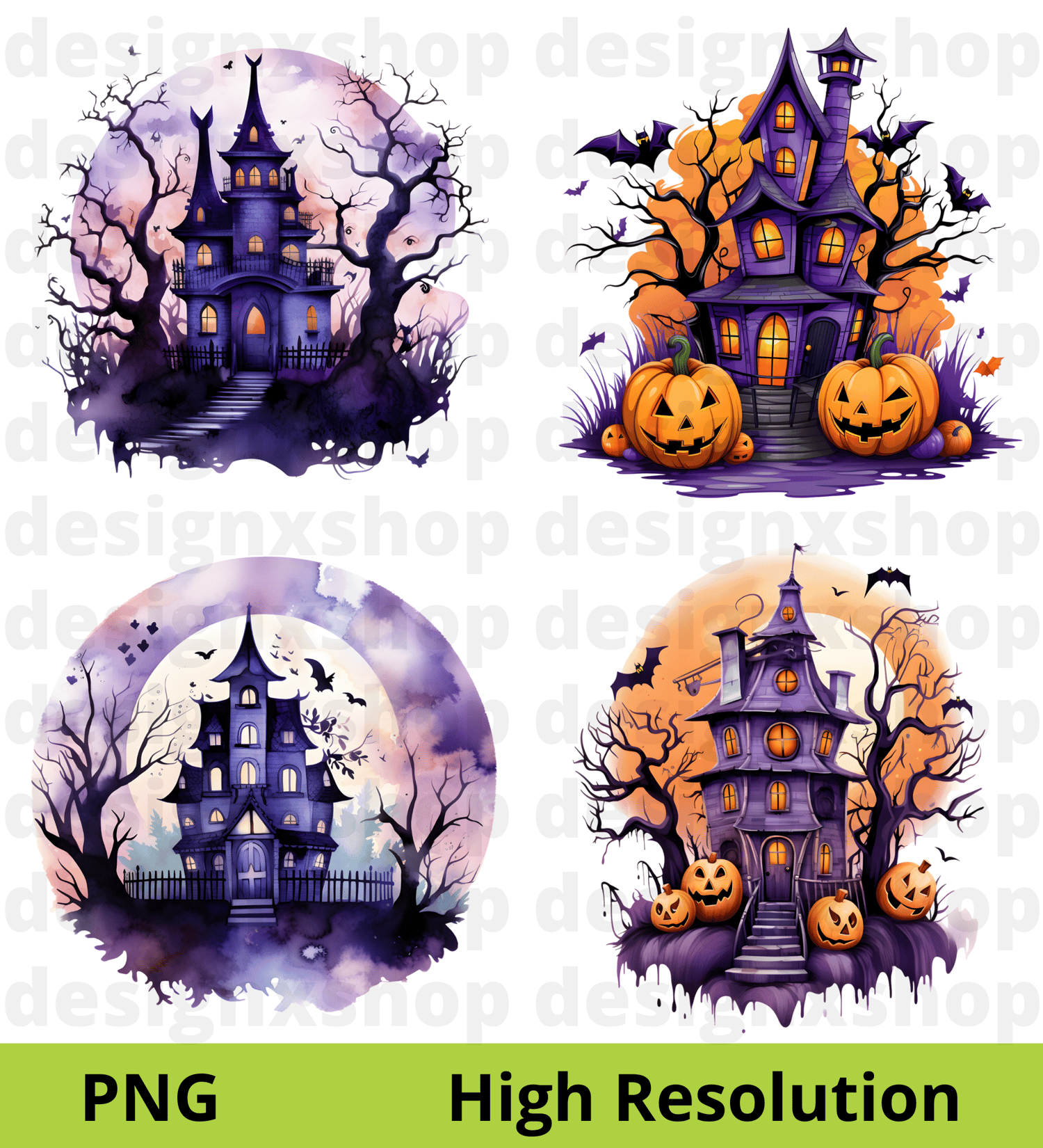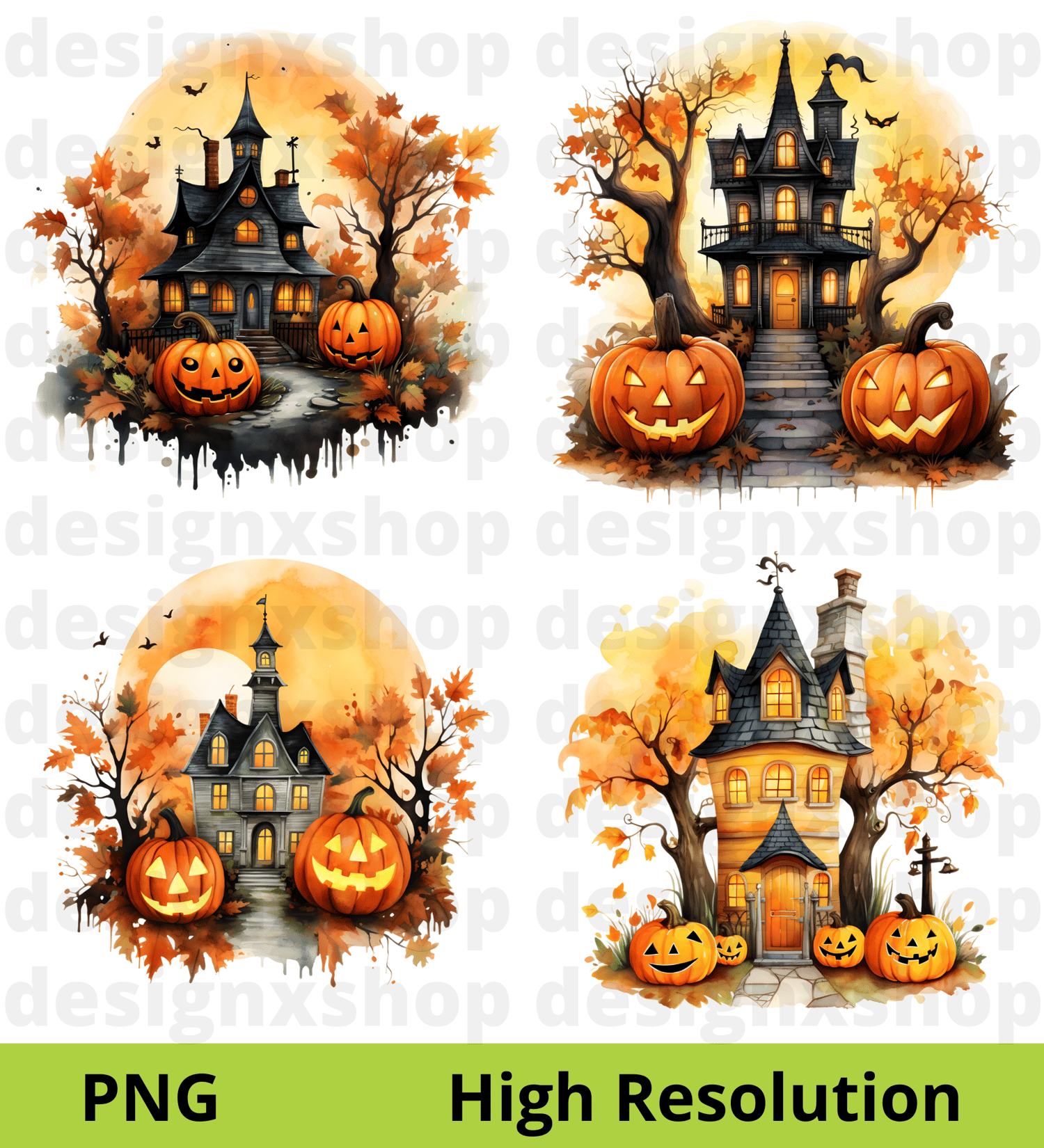 Watercolor haunted house clipart | Halloween Hunted House | Spooky House | Watercolor Halloween Clipart | Scary House | PNG Images