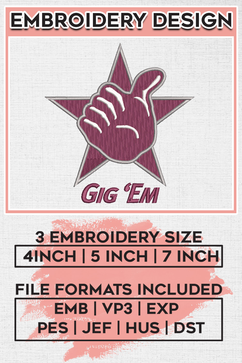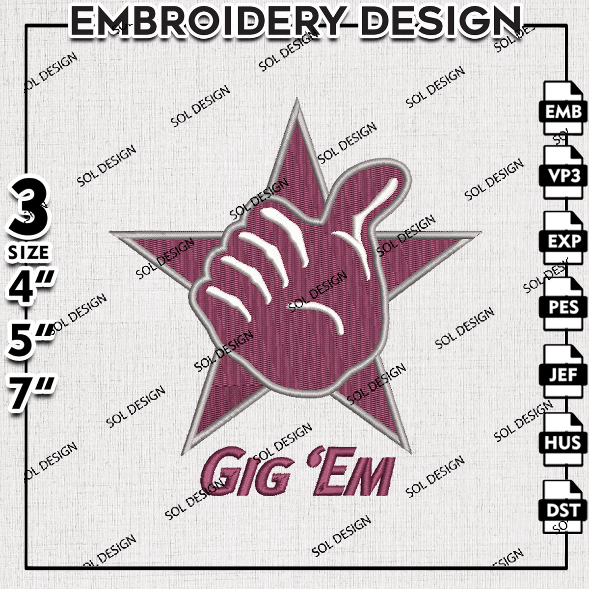 Gig Em Texas A&M Aggies NCAA Football Team Logo Embroidery Designs, NCAA Texas AM Aggies Machine Embroidery Files, NCAA Logo embroidery designs, NCAA Texas AM Logo, Digital Download