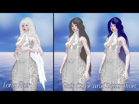 - Skin tone radial, outfit color changes, hair color changes, saturation radial, eye color changes, accessory color changes, fan color changes. The colors go through all spectrum of colors!